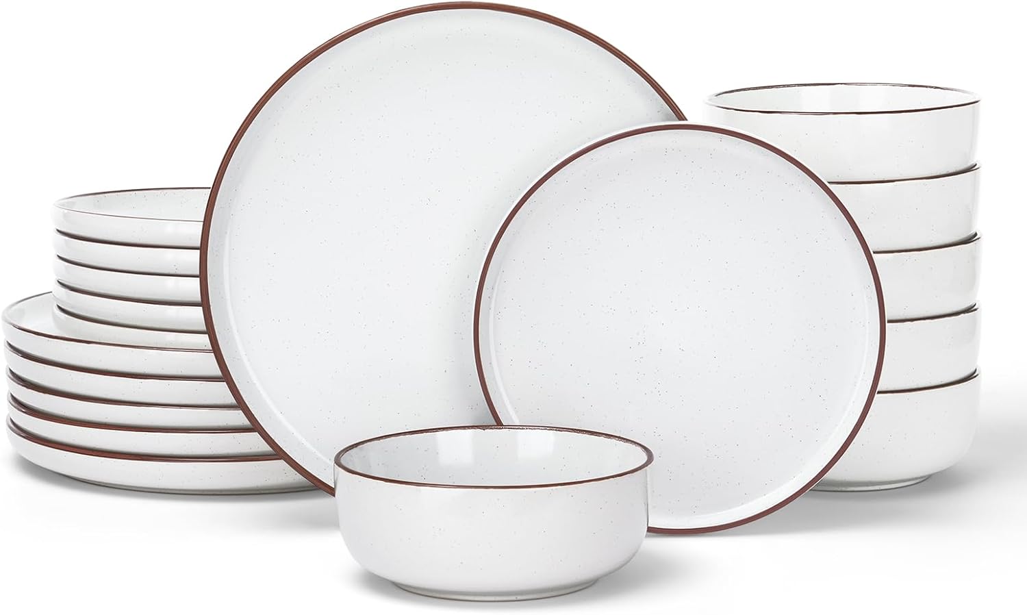 - 【BEST CHOICE】FAMIWARE Mercury dish set features modern minimalist design, neutral matte glaze, fun speckled pattern and hand-crafted edge to mesmerize people. It's a great choice for housewarmings, holidays, weddings, and fun celebrations.