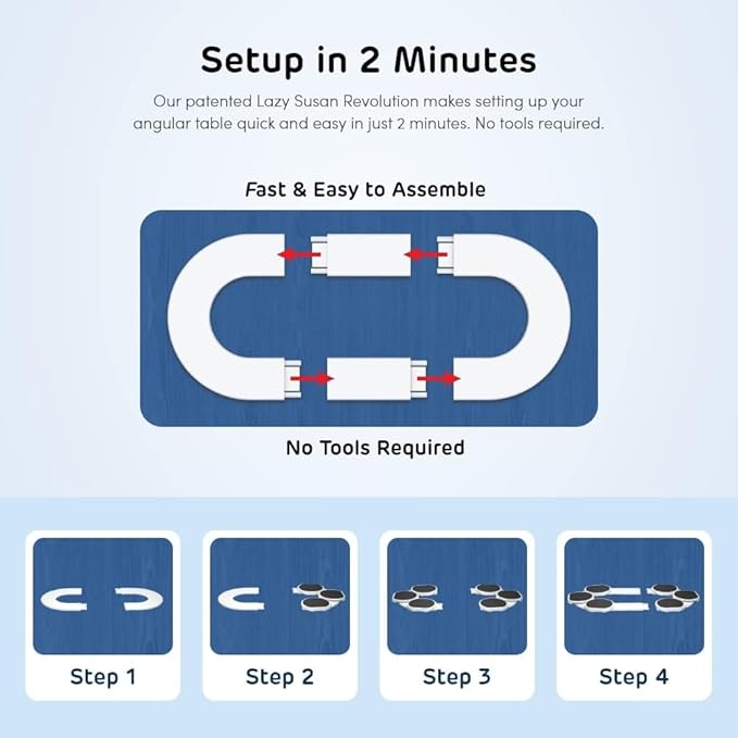 - β° 2 MINUTE ASSEMBLY - Our easy-to-assemble, easy-to-use, and easy-to-clean extra-large lazy susan is the perfect addition to your dining room table. No tools are needed to assemble. Plus we've designed our box specifically for storing your lazy susan turntable quickly and easily after meals.