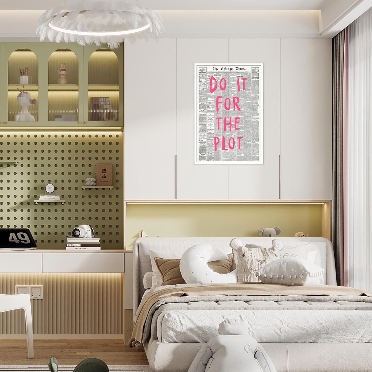 Liyark Retro Black And White Chicago Newspaper Poster Pink Trendy Preppy Apartment Art Motivational Affirmation Do It For The Plot Prints For Home Bedroom Living Room Wall Decor 16x24in Unframed
