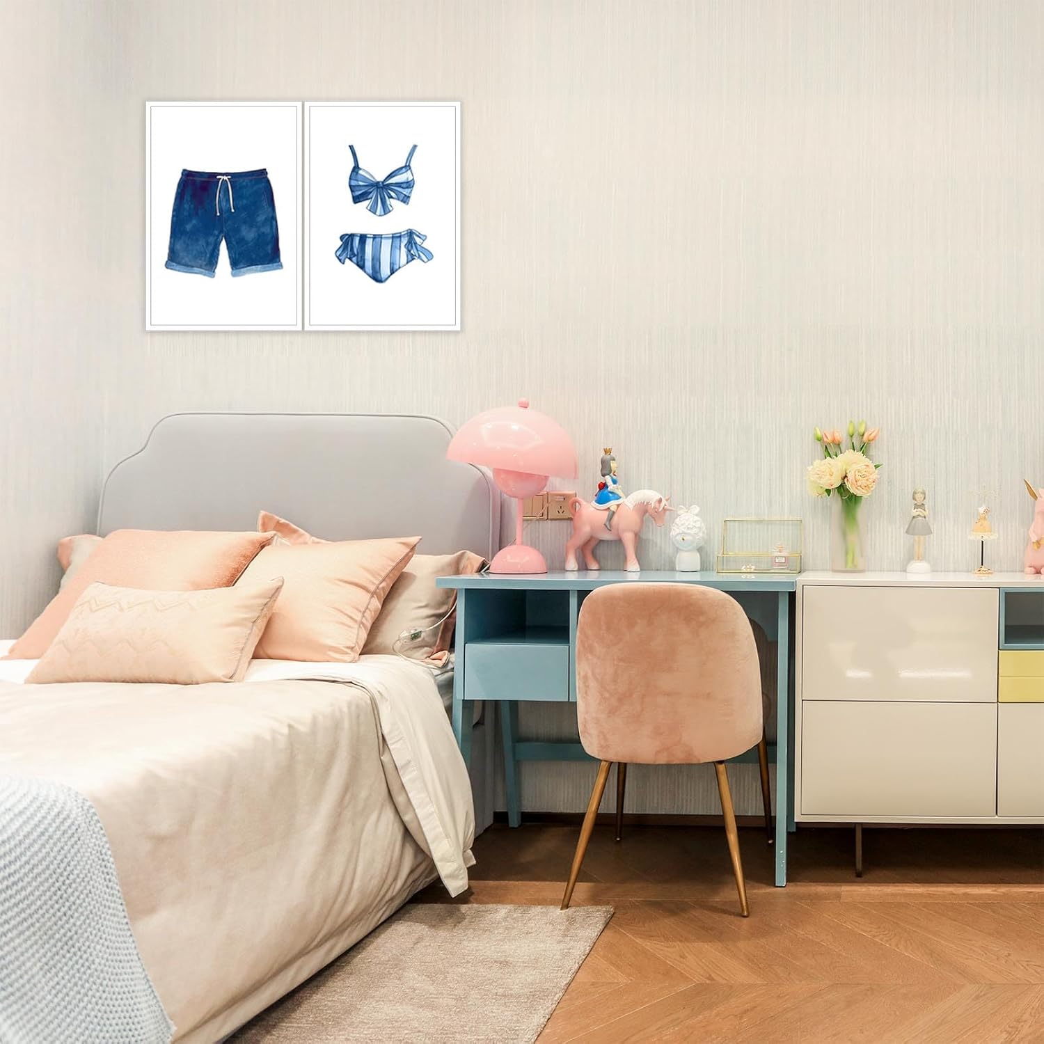 Liyark Set of 2 Retro Navy Blue And White Swimsuit Art Posters Beach Bathing Suit Prints Painting Beach House Wall Art Coastal Wall Decor Pictures For Bathroom Home Decoration 24x36in Unframed