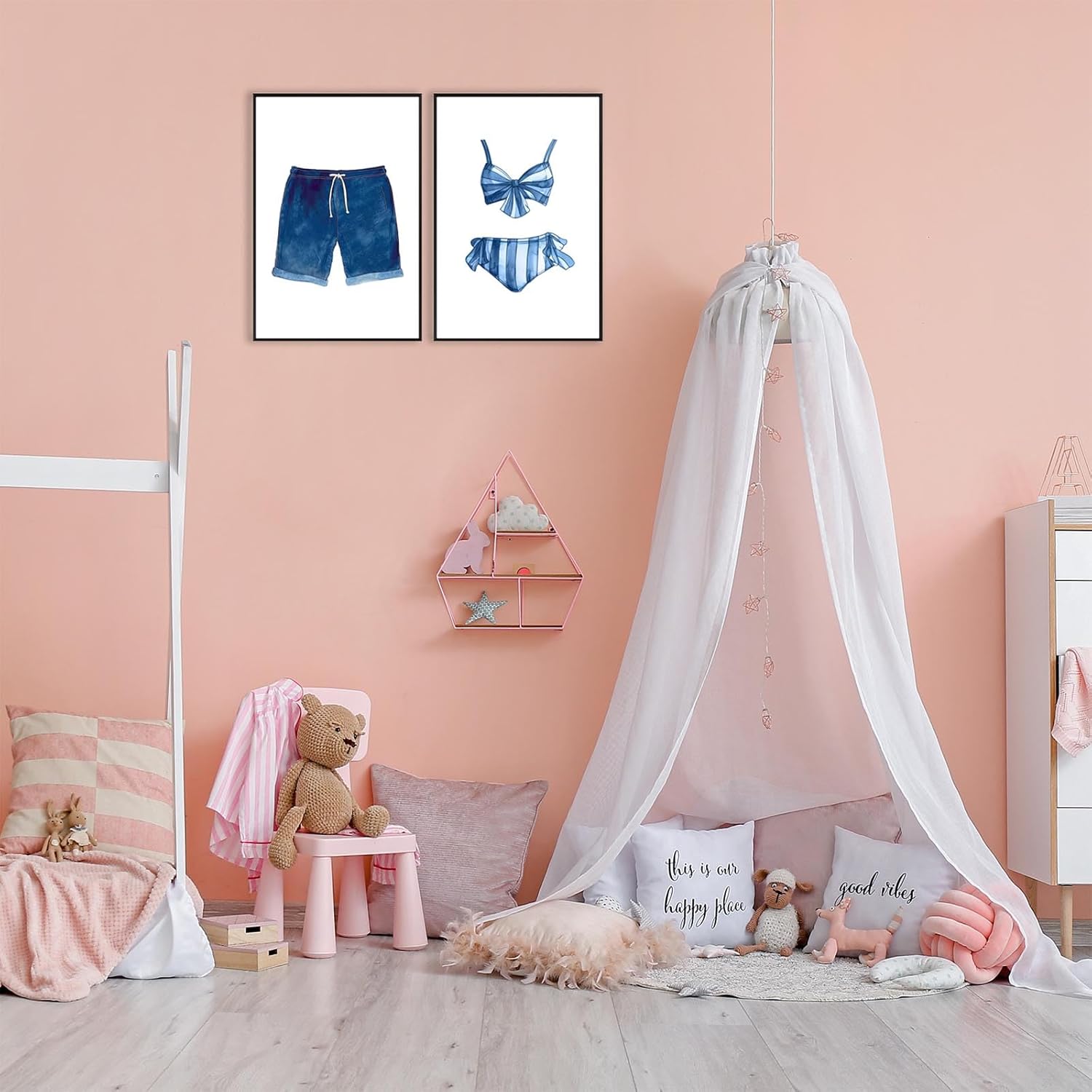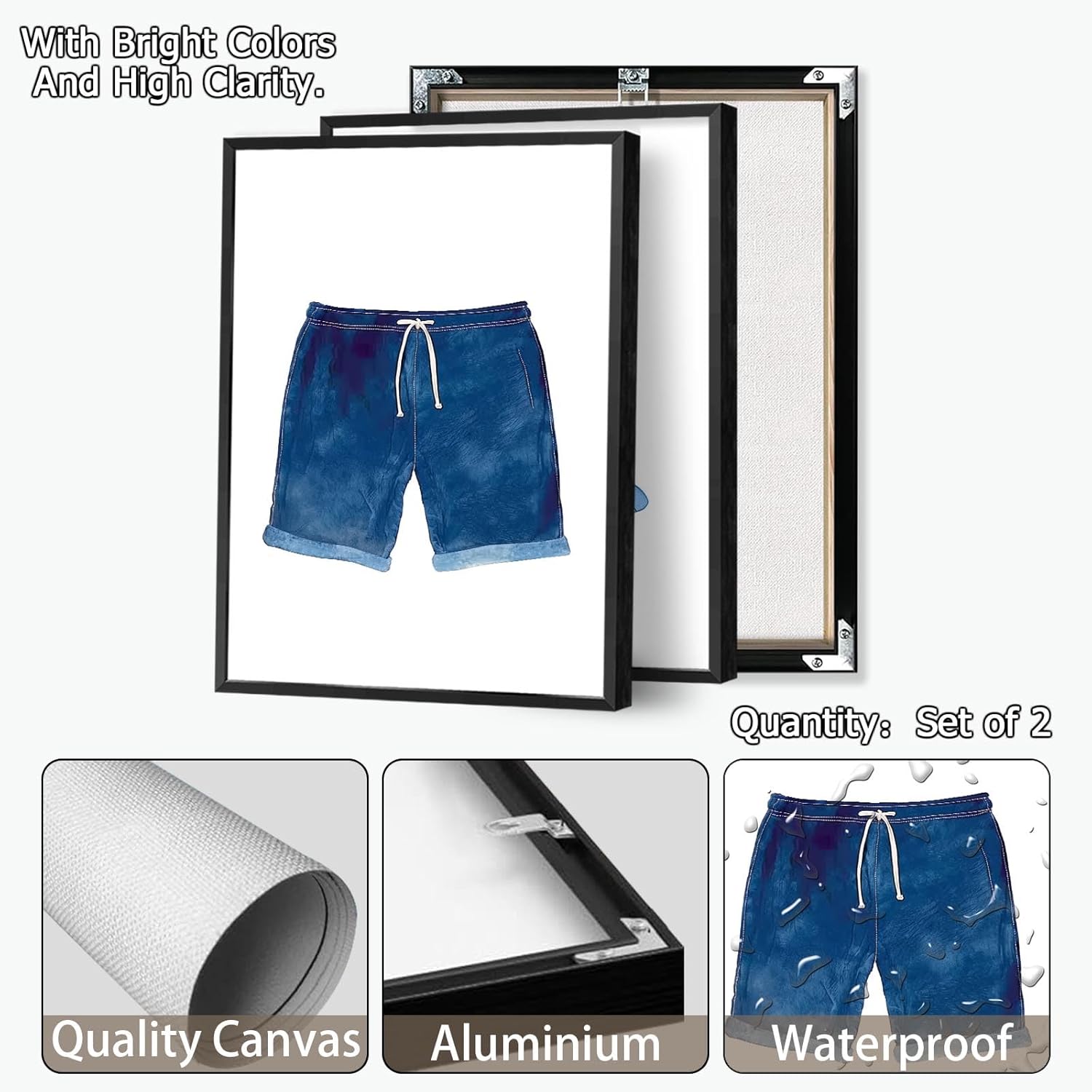 Liyark Set of 2 Retro Navy Blue And White Swimsuit Art Posters Beach Bathing Suit Prints Painting Beach House Wall Art Coastal Wall Decor Pictures For Bathroom Home Decoration 16x24in Framed