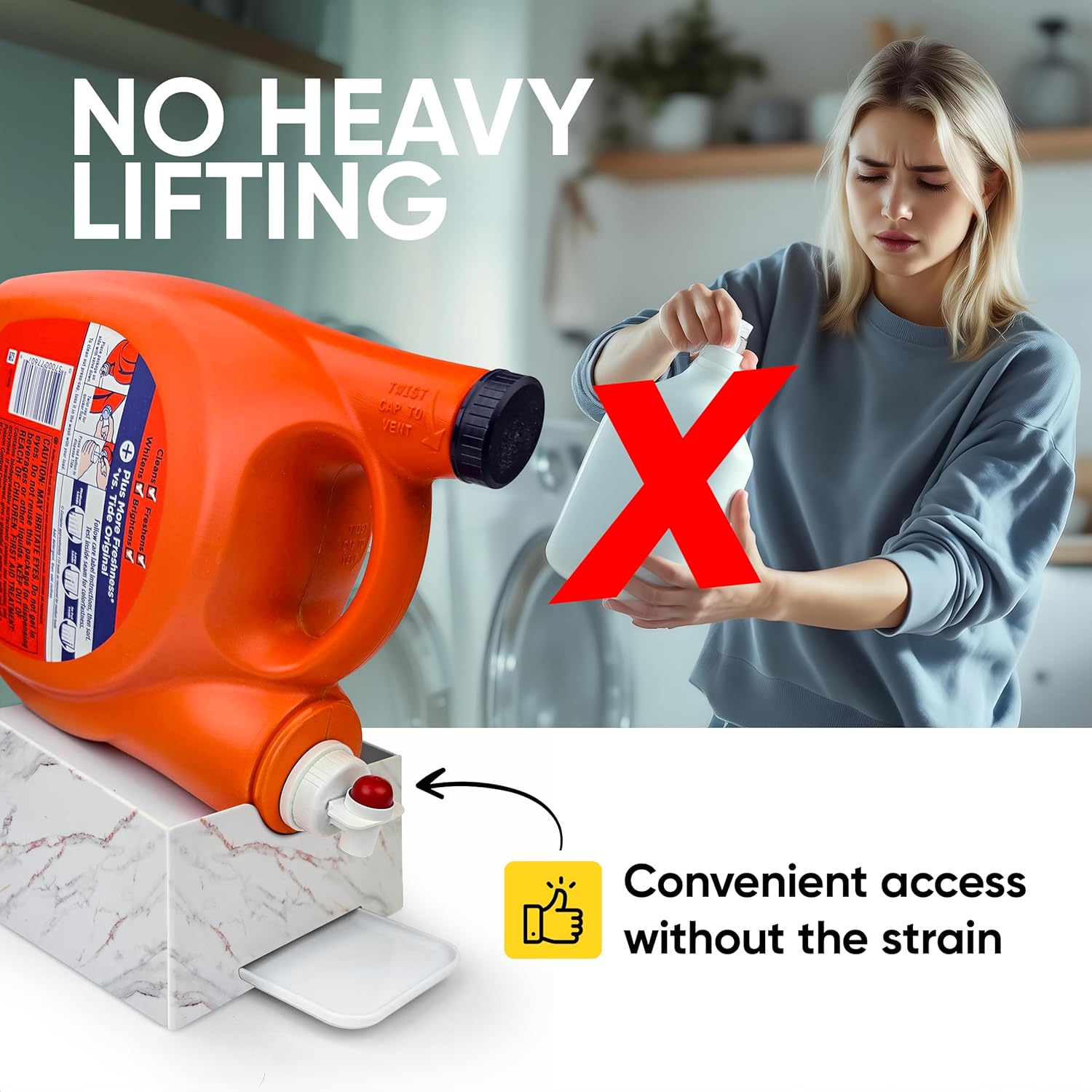 - [A LITTLE REMINDER] - This item is a Laundry Detergent Stand ONLY that does not include any Detergent or Bottles or Velcro Straps to handle the bottles but it is incredibly useful without the straps because of the angled feature which holds bottles in place when standing alone
