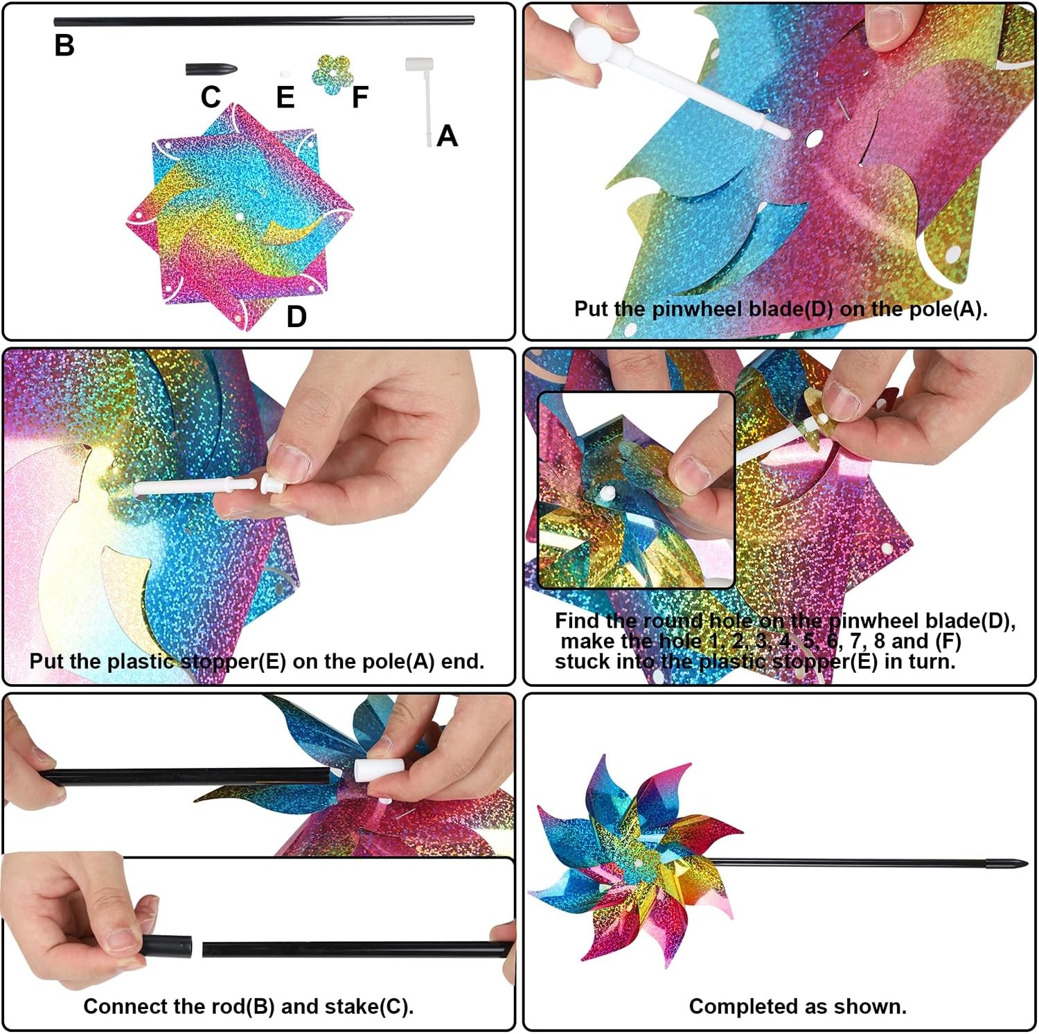 - Easy to Install: The pinwheel needs to be assembled, a detailed instruction is in the package. Easily mount these bird blinder repellent pin wheels on your area with direct sunlight and breeze for effective use. Each of them comes with a durable rod stick that can resist strong winds