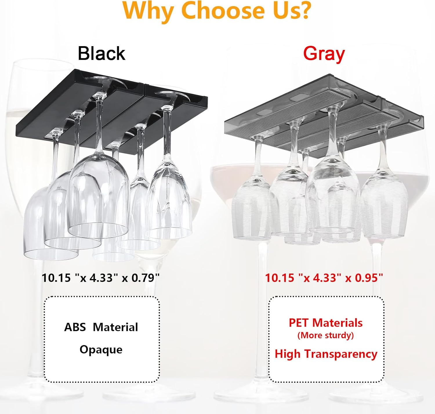 - Stemware Rack Size:10”×4.3”×0.95”(2 pack),suitable for 1.2inch-3.6inch base of wine glass,Please measure the size of your wine glass