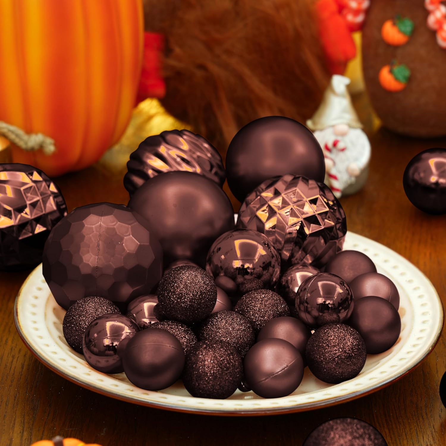 - UNIQUE DESIGN -- 1.18" mini christmas balls are done in 7 special finishes: shiny ball , matte ball , diamond ball, pumpkin shape. It's your call to make christmas season more memorable and unique