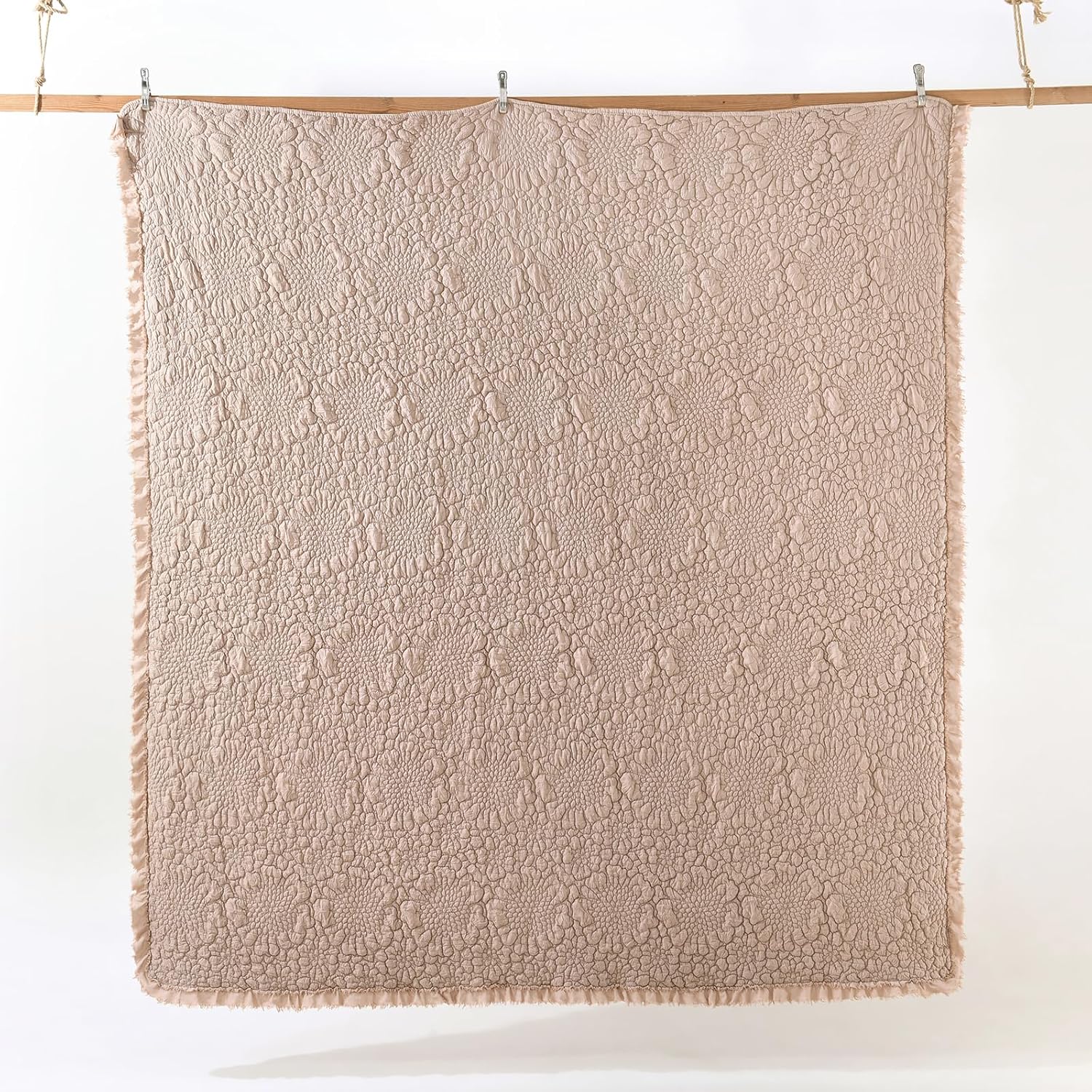 - Elegance Flower Design with Ruffled Edges: This floral stitching reversible quilt, flower quilted pattern on front and back. Added Ruffled Fringe both on bedding set and shams, makes your room stylish and fashion look.