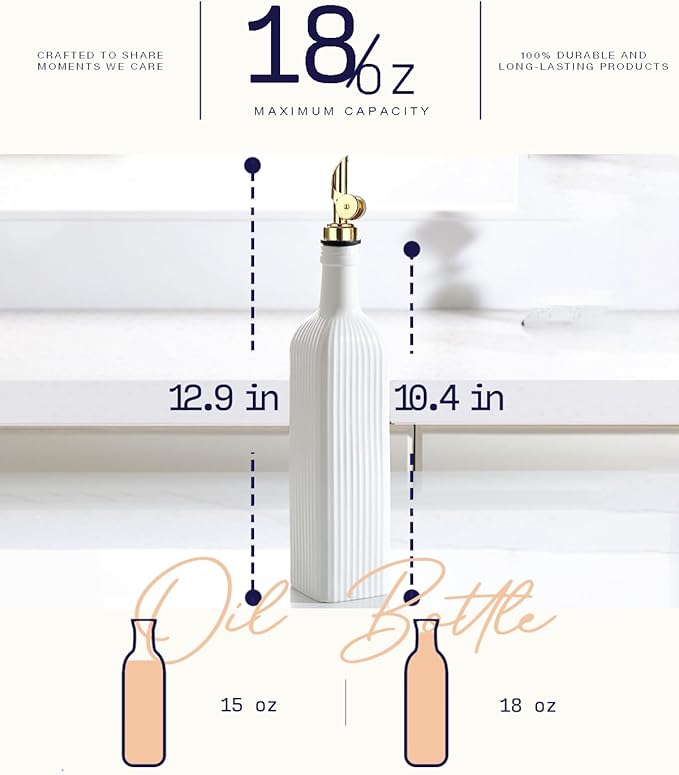 - [Ridged Texture for Grip] The ridged texture of olive oil bottles for kitchen not only adds a stylish touch but also provides a secure grip, making it easy to handle and preventing accidental slips during use