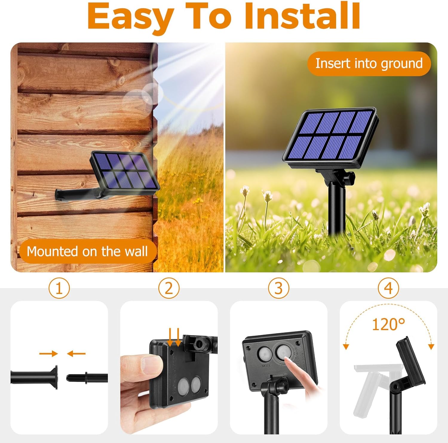 - 4 Packs Solar Halloween Lights Outdoor: Each Ultra-Bright fairy lights solar with 80 LED 33 FT (26.5 ft light string +6.5 ft lead wire), total 320 LED with orange & purple light beads, emitting a Spooky and wonderful light, creating an atmosphere of mystery and horror for Halloween party