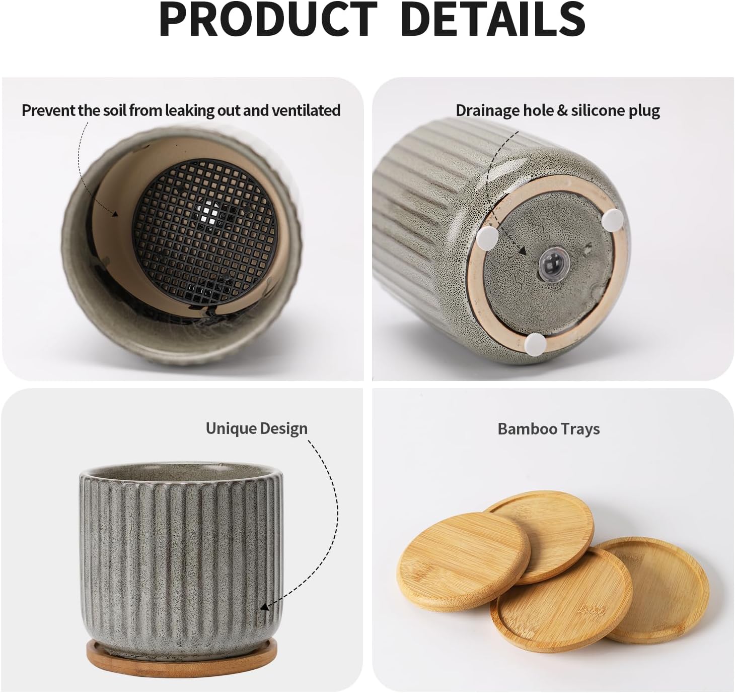 - Drainage Hole / Plug and Mesh Pad - With a drainage hole,allow execs water to drain away in time.which can make your plants breath more freely. Mesh pad keep soil from migrating out of the pot drain, and keeping the hole unblocked for a long time. You also could use the pot with the plug if you don't need the drain.