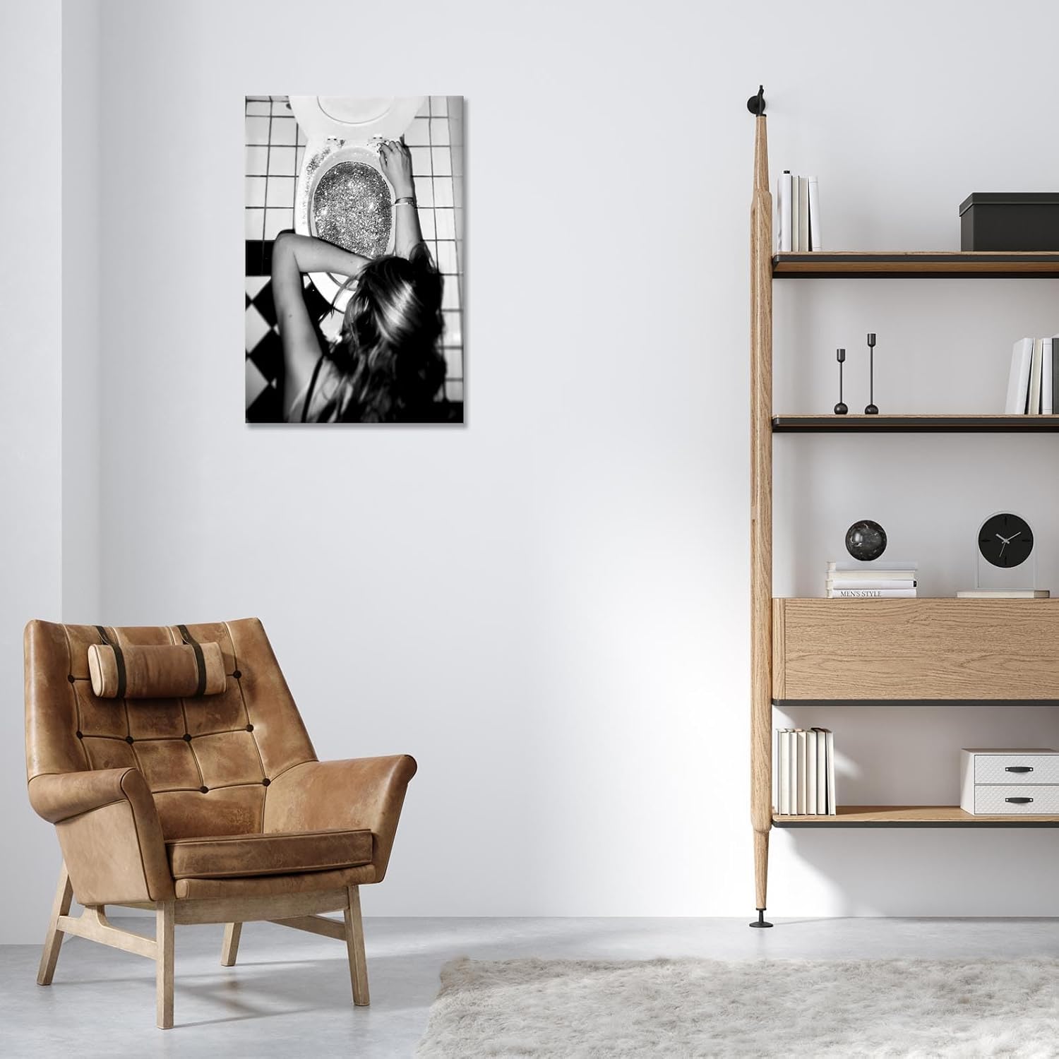 Funny Bathroom Wall Art Black and White posters Bar Disco Party prints painting Girls Bathroom Canvas wall art Funky aesthetics Teen Girl Bedroom wall decor for 12x16in Framed