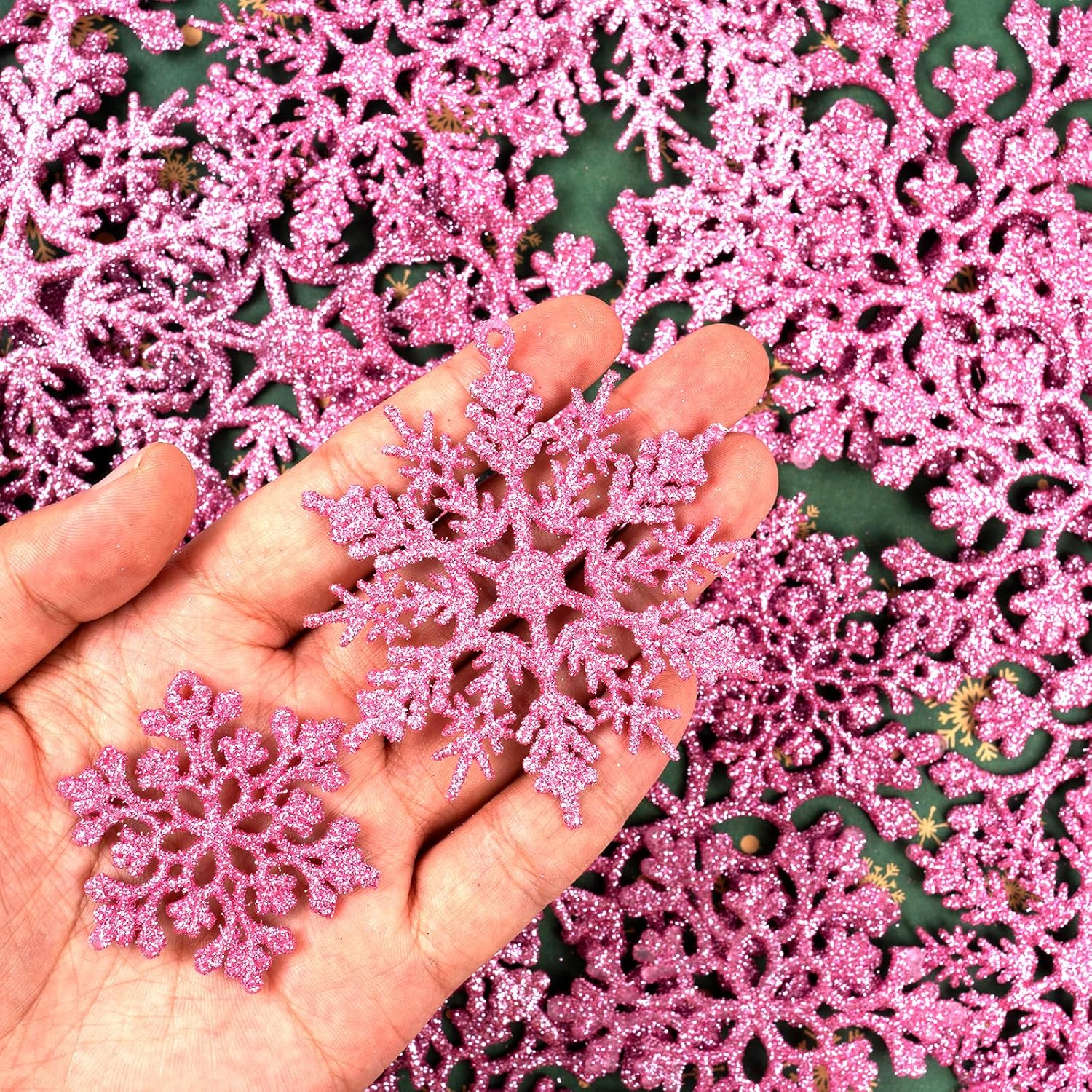 - CHRISTMAS TREE SNOWFLAKES: Featuring sparkly glitters on the surface, these light pink snowflakes tree ornaments add much more sparkle to your Christmas tree decorations, various sizes give a nicer variety on the tree, just let it snow.