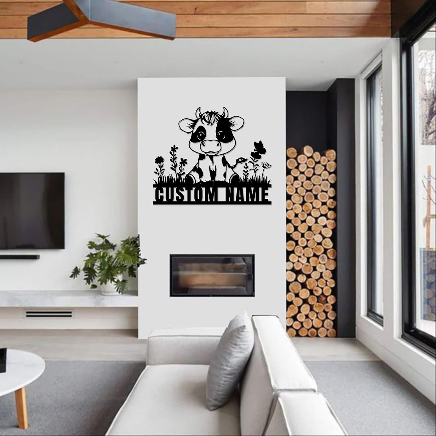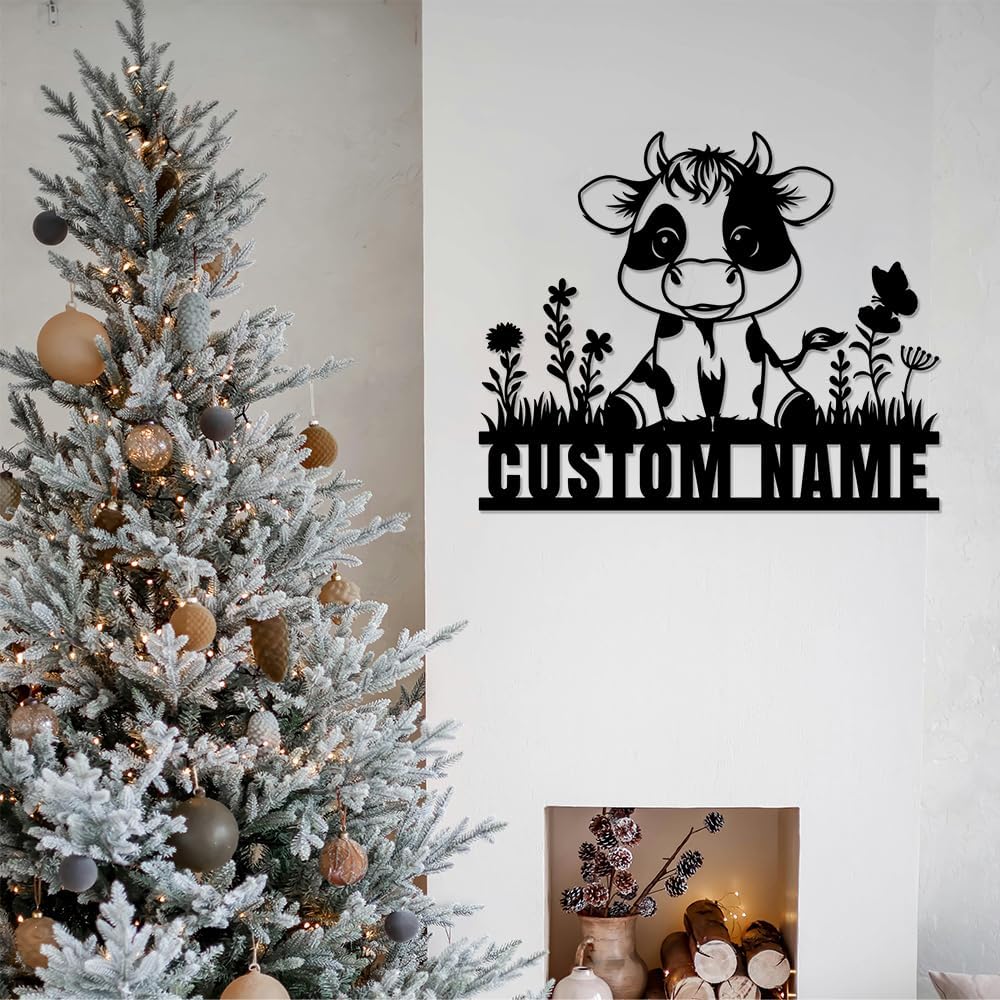 Custom Cow Metal Sign, Personalized Last Name Wall Art, Farmhouse Customized Decor for Home, Garden, Yard, Farm, Ranch