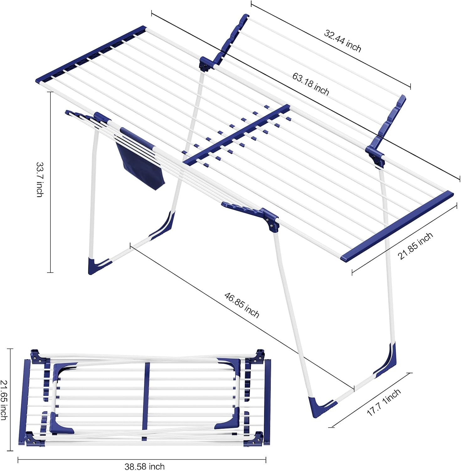 - Multi-Functional: Our clothes airer features 2 folding wings that can be easily opened and closed. Each wing measures 32.4*8.7 inches and is designed for hanging smaller items. With 4 drying spaces, you can hang clothes, dresses, towels, pillows, socks, and more.