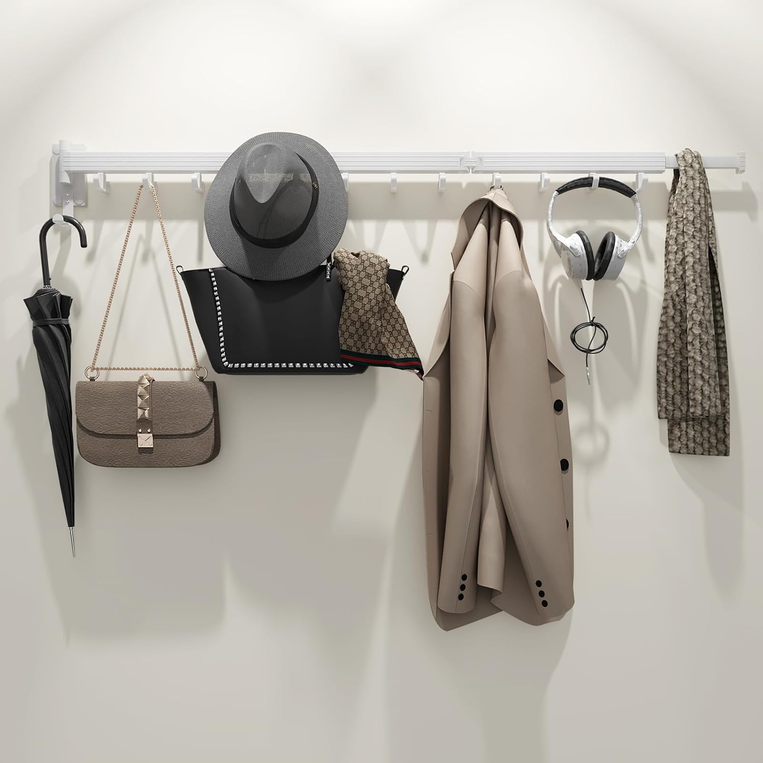 - ✅ Upgrade Dual-J-Shape Hooks Design -- Our clothes drying rack features an innovative design with dual J-shaped & circular hooks, providing you with versatile hanging options. The additional large hooks and extendable rods make it easy to hang a variety of items with ease. Maybe you will fancy this wall-mounted clothes rack, as it brings convenience and efficiency to your daily life.