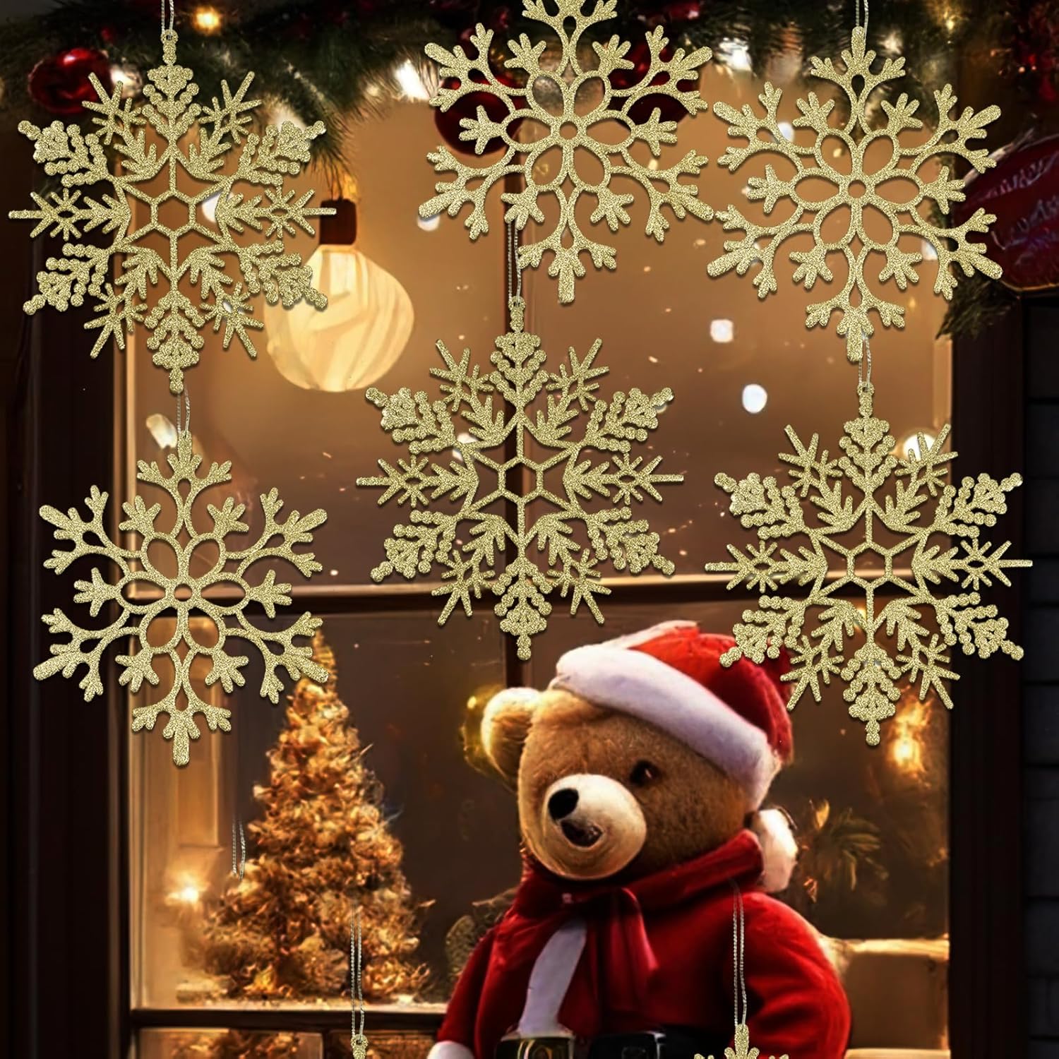 - SNOWFLAKES FOR CHRISTMAS: Featuring sparkly glitters on the surface, these gold glitter snowflakes tree ornaments add much more sparkle to your Christmas tree decorations, they also look gorgeous on windows, ceiling, fireplace, outside yard, porch etc, perfect winter decorations snowflakes; Besides, they are excellent for frozen theme birthday party, winter wonderland birthday party decorations.