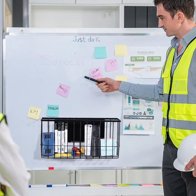 dedoot Magnetic Holder Locker 14.1"x 3.9"x 7" Strong Magnetic Black Mesh Holder Magnetic Basket Organizer Shelf Rack for Whiteboard,Fridge, Sponge, Recipe, Beverage,Refrigerator,Office File Foil