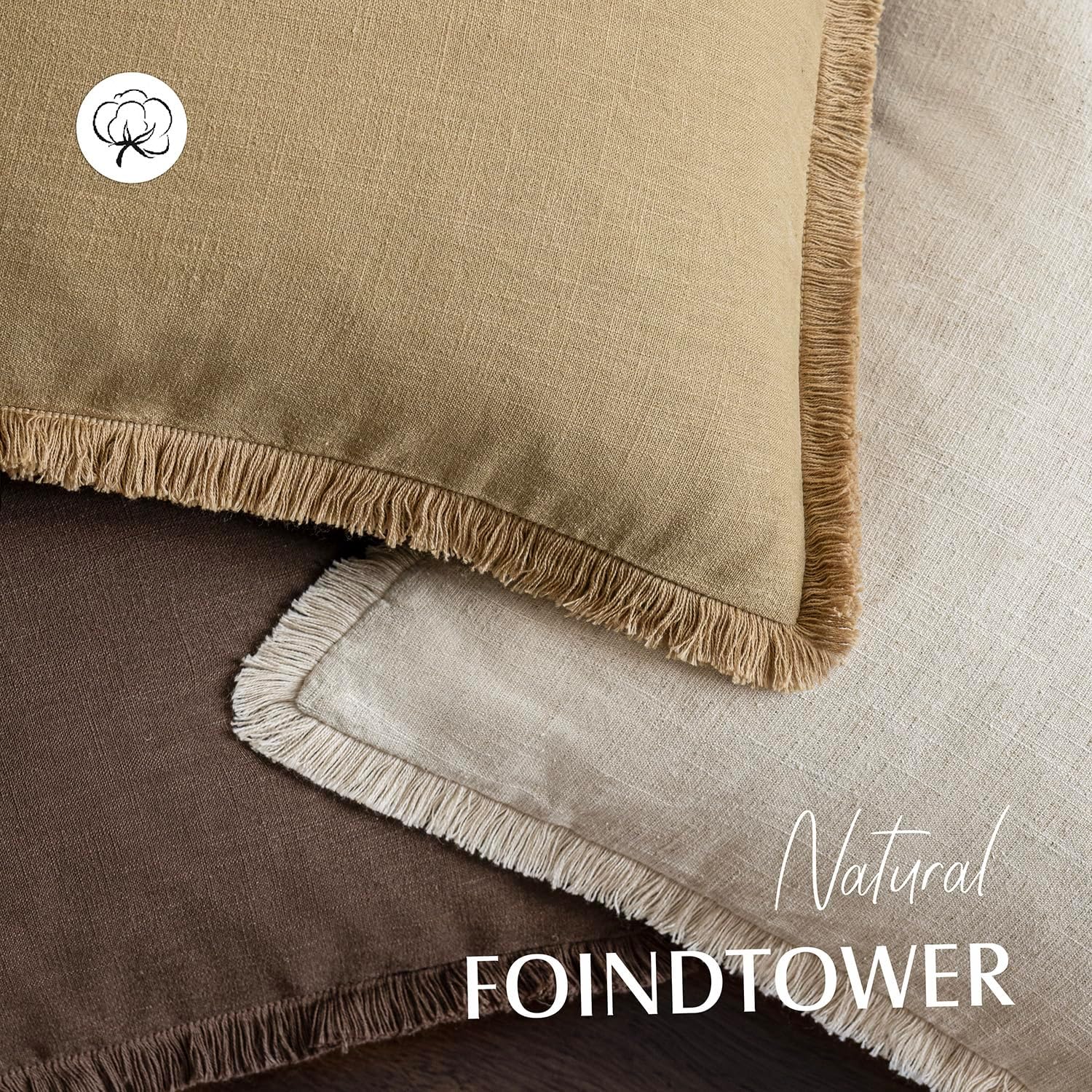 Foindtower Set of 2 Decorative Linen Fringe Throw Pillow Covers Farmhouse Cushion Cover with Tassels Soft Accent Pillowcase for Couch Chair Sofa Bed Living Room Home Decor,22×22 Inch,Light Khaki Taupe