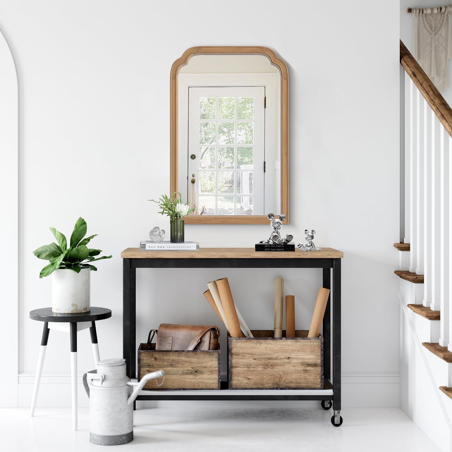 WallBeyond Wood Frame Wall Mirror Rounded Corner Arch Rectangle Mirror for Entryway, Living Room or Bedroom Home Decor - Light Woodgrain [20" x 30" Honey-Colored]