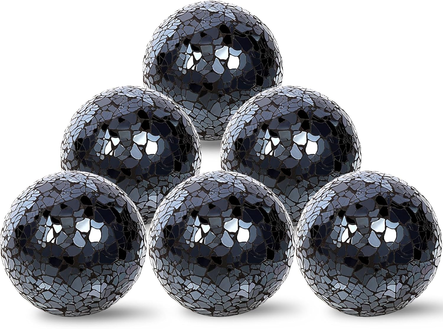 6Pcs Decorative Ball for Bowls, 8cm/3.15inch Mosaic Glass Centerpiece Decoration Balls Mirror Glass Ball Fillers for Home Decor Dining Tables Wedding Party (Black)