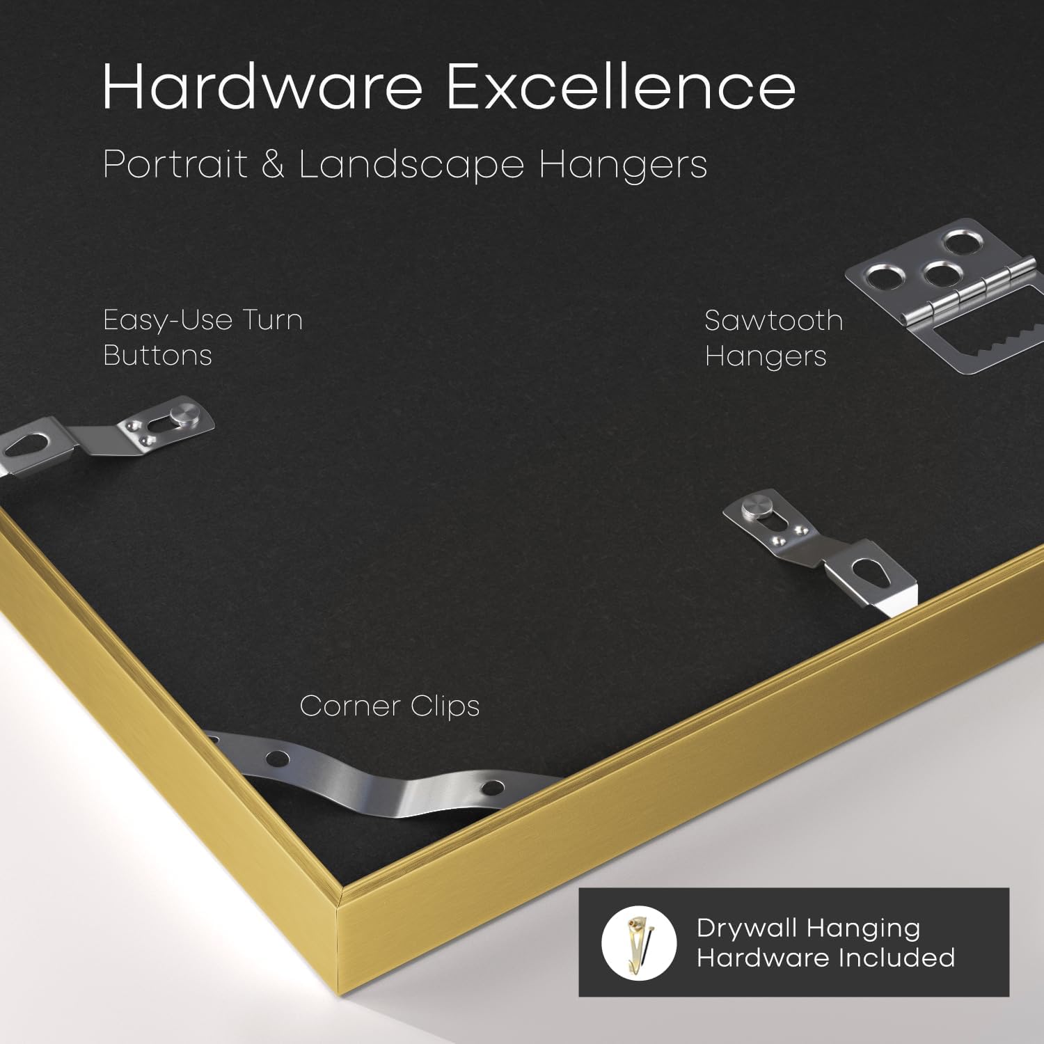 Homeforia 24x36 Gold Picture Frame, High End Metal 24 x 36 Large Poster Frames with Mat 20 by 30 inch Photo, 24x36 Gold Frame Matted to 20x30 for Print, 36x24 Frame, Tempered Glass, Wall Kit, Set of 1