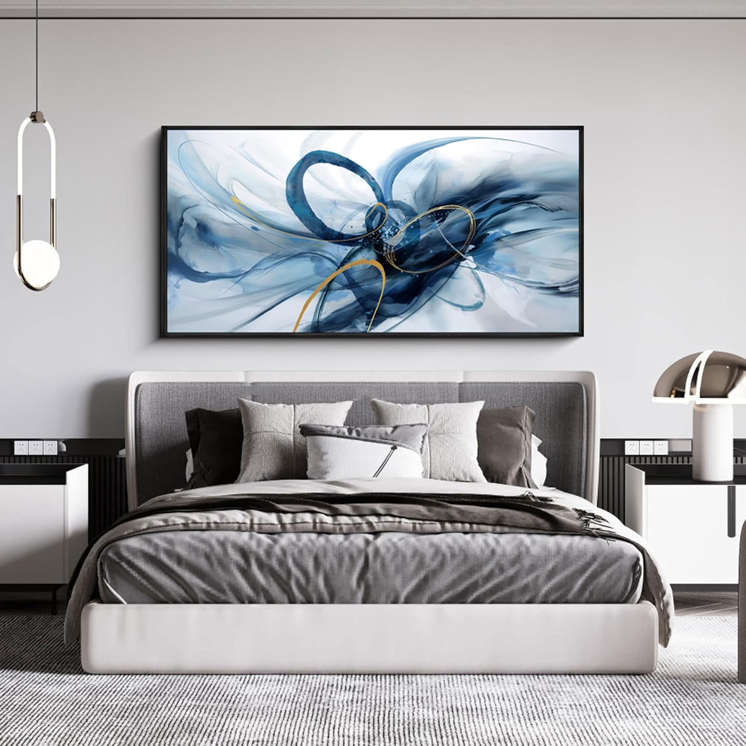 - Large wall art size :This modern blue abstract canvas artwork measures approximately 29x58 inches and has a black frame to lift the spirit of your living room!