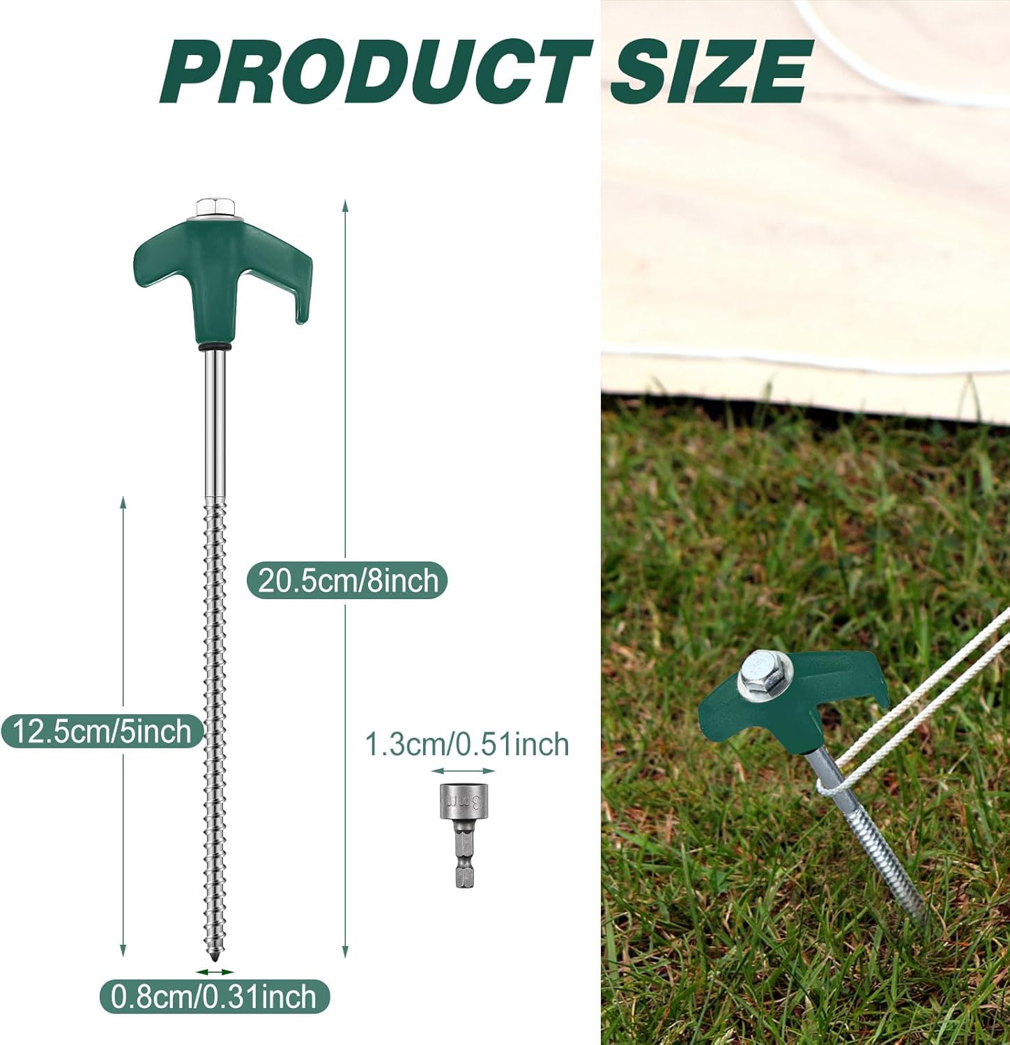 Hicarer 10 Pcs 20 Pcs 8'' Screw in Tent Stakes Heavy Duty Ground Metal Stakes for Inflatables with Hex Head Driver for Outdoor Camping Tent Inflatable Garden Decor (Dark Green)