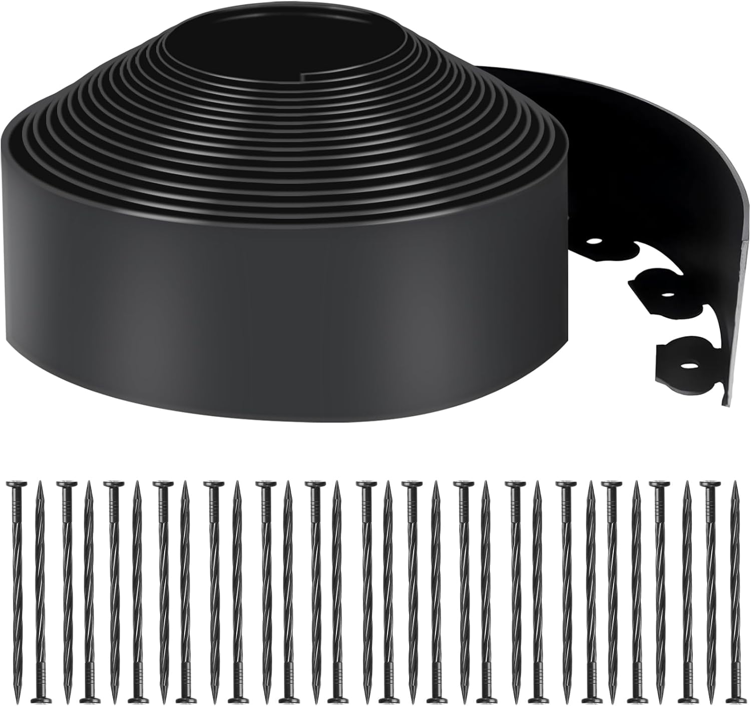 - What You Get: Our landscape edging kit contains a roll of 4 inch high/ 33 FT length lawn edging and 40pcs anchoring spikes(Stake it every 2-3 holes to effortlessly achieve your desired design), which can meet your daily use needs and help you to create a beautiful and neat garden.