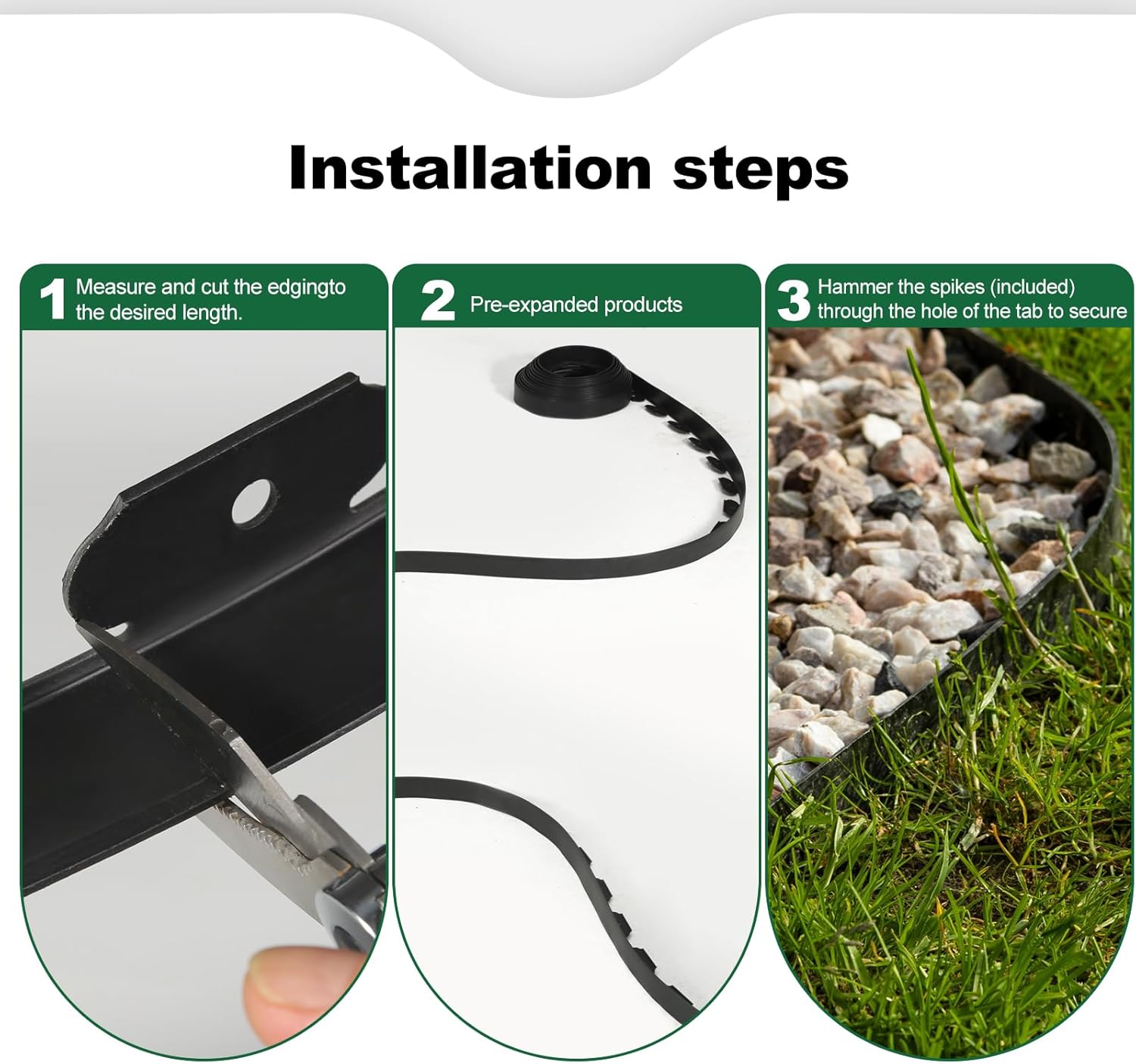 - Easy to Install: This plastic edging for landscaping does not require complicated assembly work, you only need to lay it to the shape of your needs and insert the spikes into the ground to secure it in place, with no digging required, Quickly creating an ideal garden yard edging border.