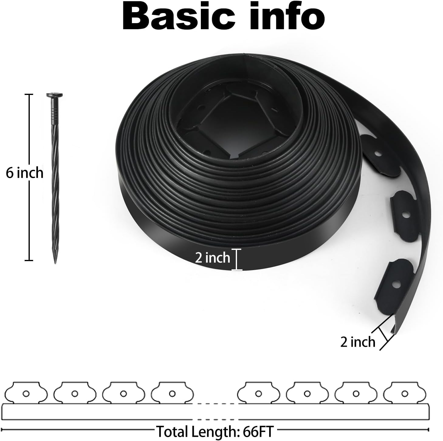 - What You Get: Our landscape edging kit contains a roll of 2 inch high/ 66 FT length lawn edging and 60pcs anchoring spikes(Stake it every 2-3 holes to effortlessly achieve your desired design), which can meet your daily use needs and help you to create a beautiful and neat garden.