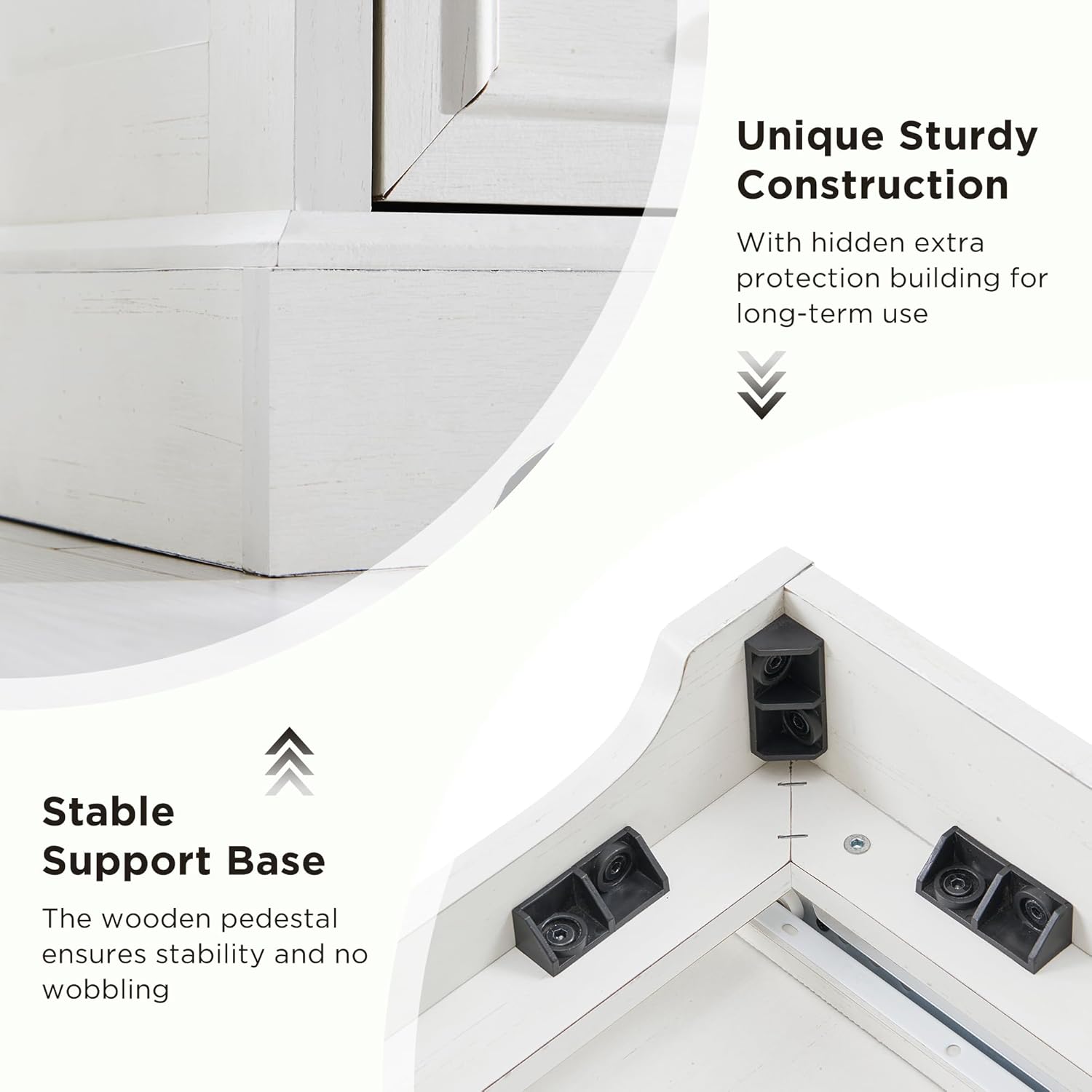 - MODERN FARMHOUSE: The molding details, support pedestal and drawer's bar handles add a romantic touch. The finish highlights the natural beauty of the engineered wood’s grain and hue, which vary slightly from side to side and boast a modern farmhouse flair. This versatile piece will takes decoration easy in spaces