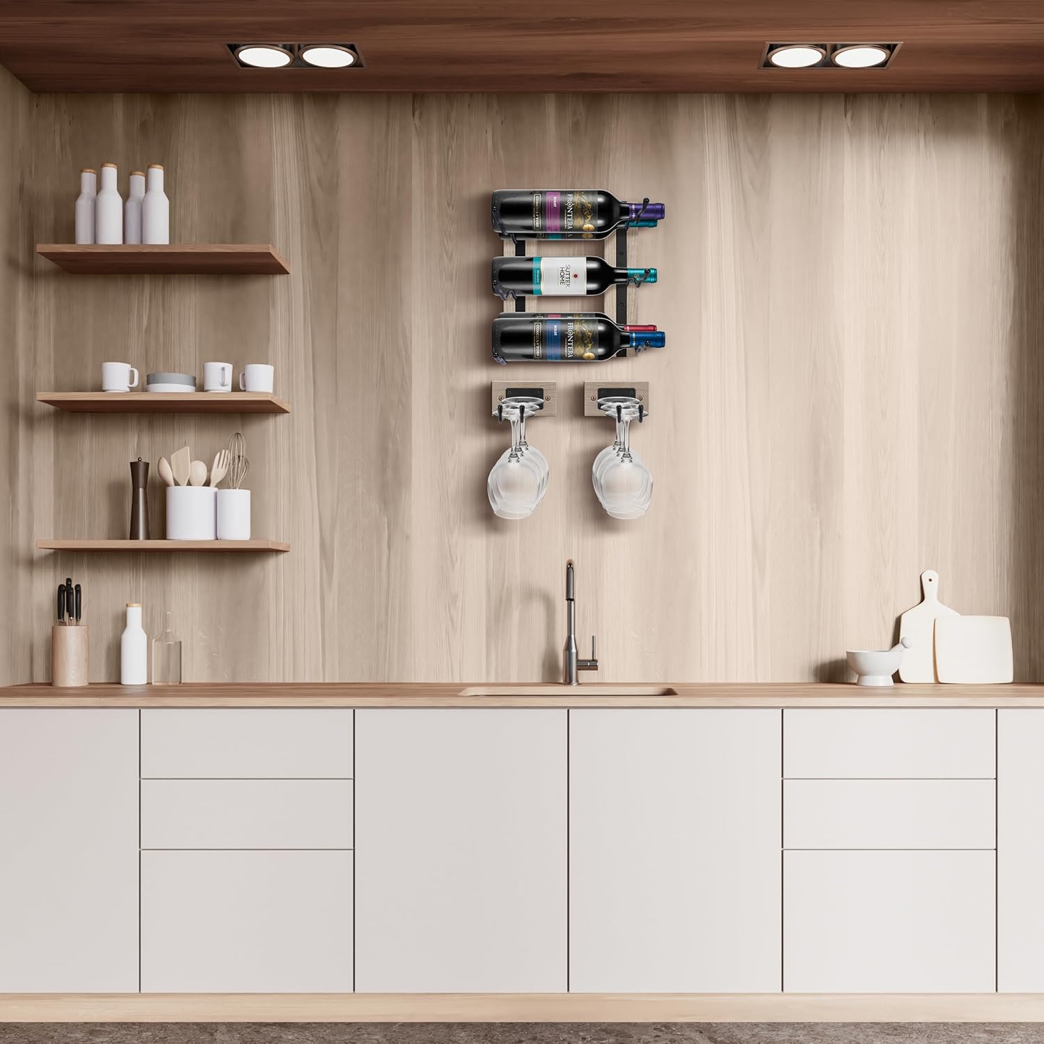 Sorbus Wall Mounted Wine Glass Stemware Rack Set - Wire & Wood Wine Rack Wall Mounted for Wine Glasses, Champagne Glasses, and Drinkware - Complete Your Home Bar & Kitchen Storage, Grey