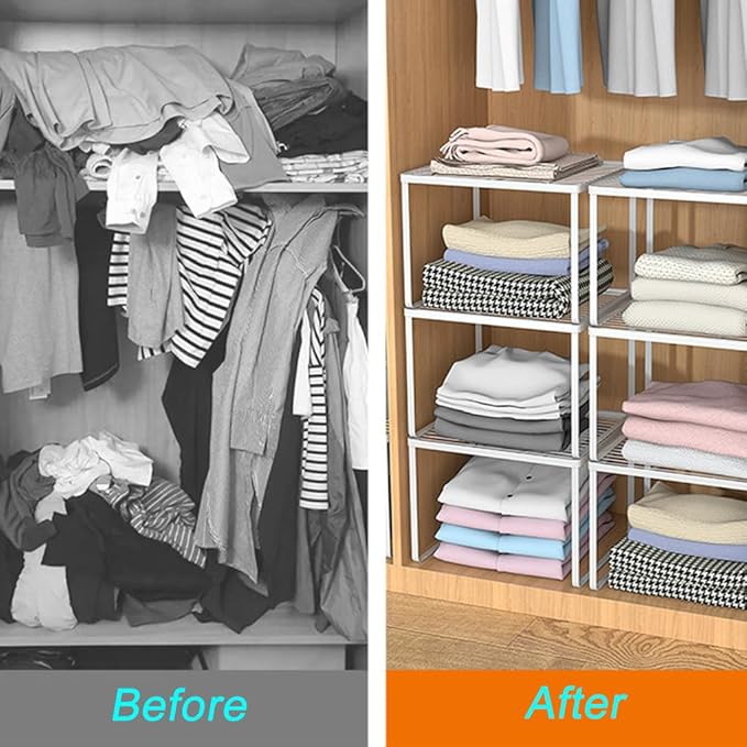 - Maximize Space Utilization: Our kitchen cabinet shelf organizer allows you to create additional storage space, keeping your cabinets neat and orderly. Say goodbye to cluttered countertops and cabinets.