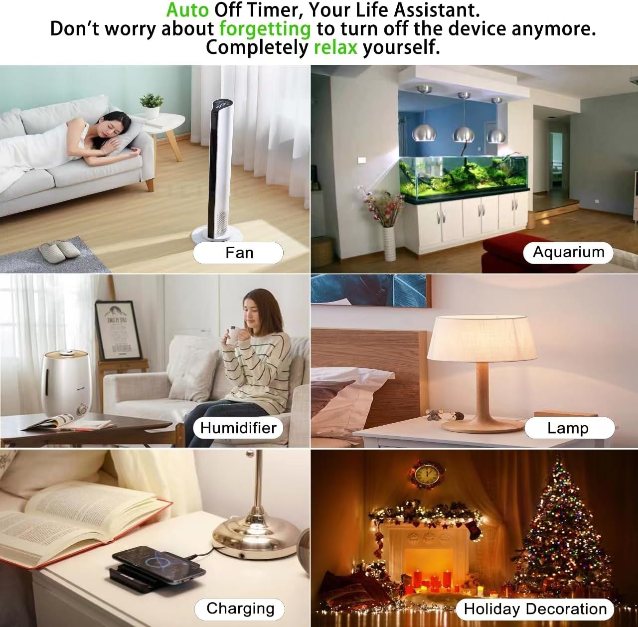 - 【GREEN LIFE STYLE】: It's your lovely life assistant. Don't worry about forgetting to turn off your devices anymore. Save your energy and save your bills. Completely relax yourself.