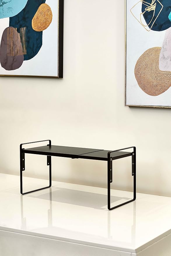 Nxconsu Cabinet Shelf Expandable Height Adjustable Shelf Organizer Riser for Kitchen Cabinet Pantry Cupboard Under Sink Countertop Organization Storage Space Saver Stackable Heavy Duty Metal Black XXL