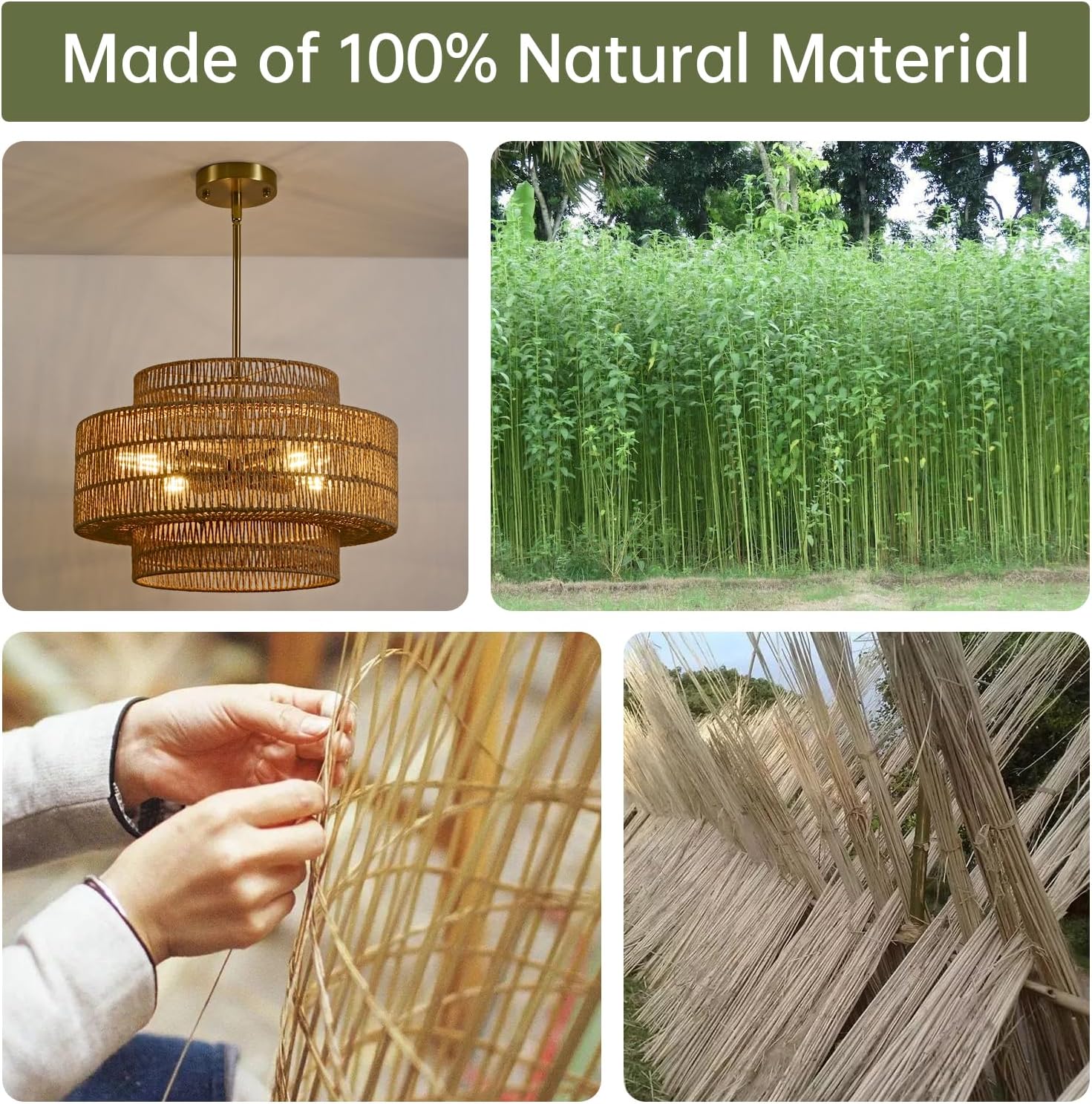- [DURABILITY & ECO-FRIENDLY] Made from top-quality natural rattan, this Farmhouse Chandeliers Hanging Light Fixtures is designed for long-term use. It's fade-resistant, safe, eco-friendly and health-conscious. Plus, it comes with a thickened metal lamp body frame for added durability.
