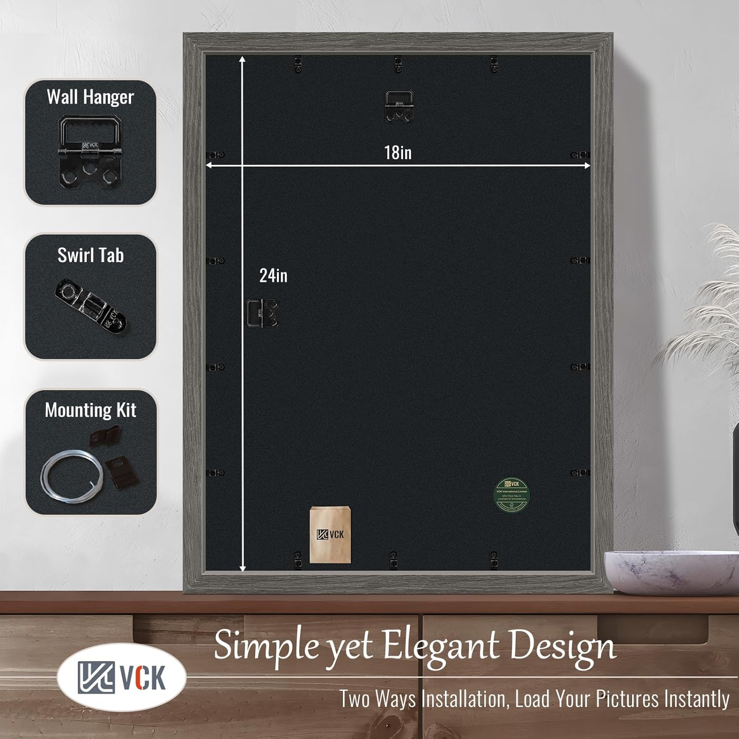 - Effortless Installation: Our poster frame comes with hanging hardware for both horizontal and vertical display. The unique spin-lock design allows for effortless loading of 18x24 or 24x18 photos, prints, diplomas, puzzles, or art