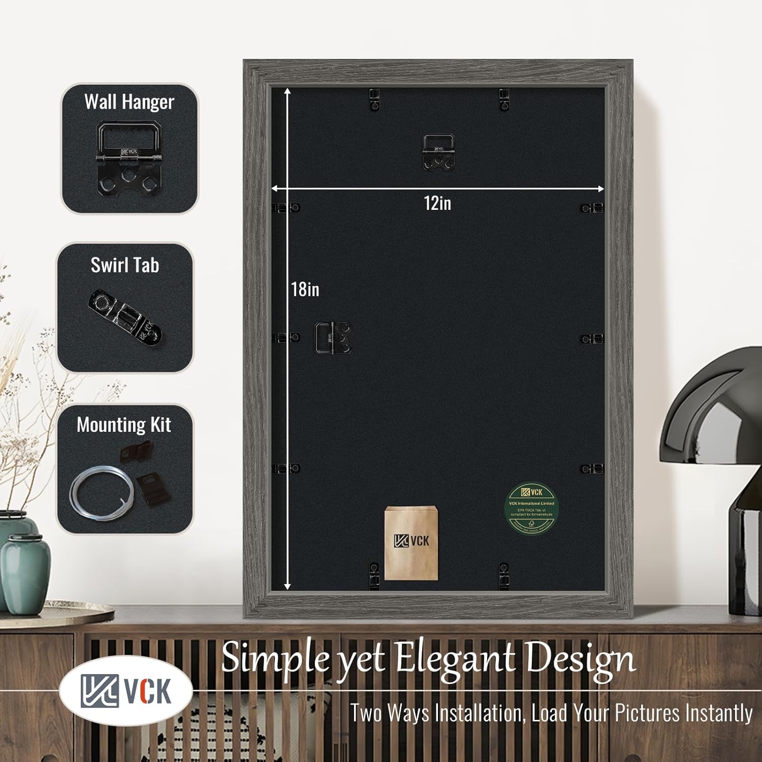 - Effortless Installation: Our grey picture frame not only comes with hanging hardware for both horizontal and vertical display, but also features a unique spin-lock design. Allows for easy loading of 12x18 or 18x12 photos, prints, diplomas, puzzles, or art