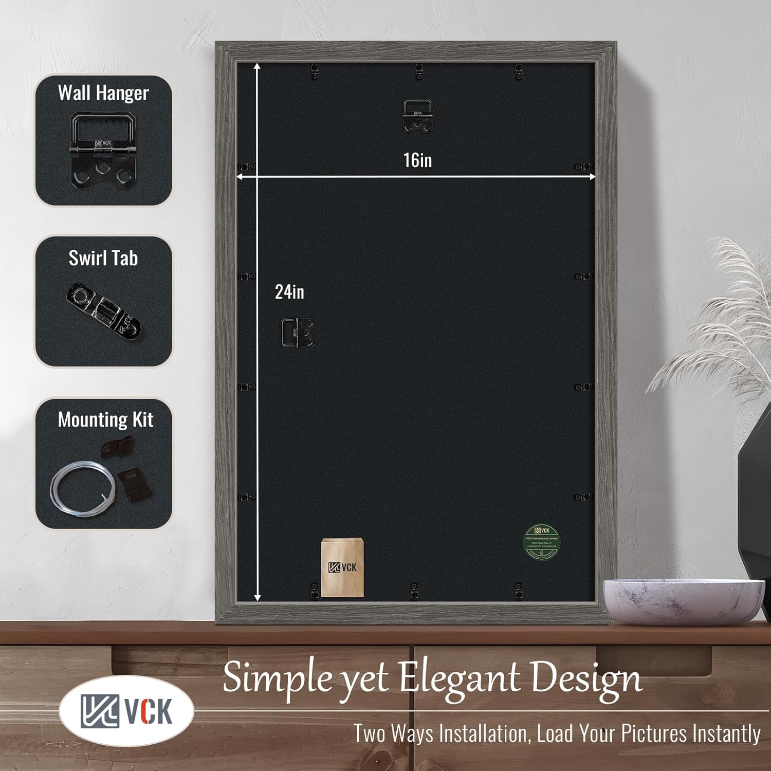 - Effortless Installation: This grey picture poster frame comes with hanging hardware for both vertical and horizontal display and features a unique spin-lock design for easy loading of 16x24 or 24x16 photos, prints, diplomas, puzzles, art, and more