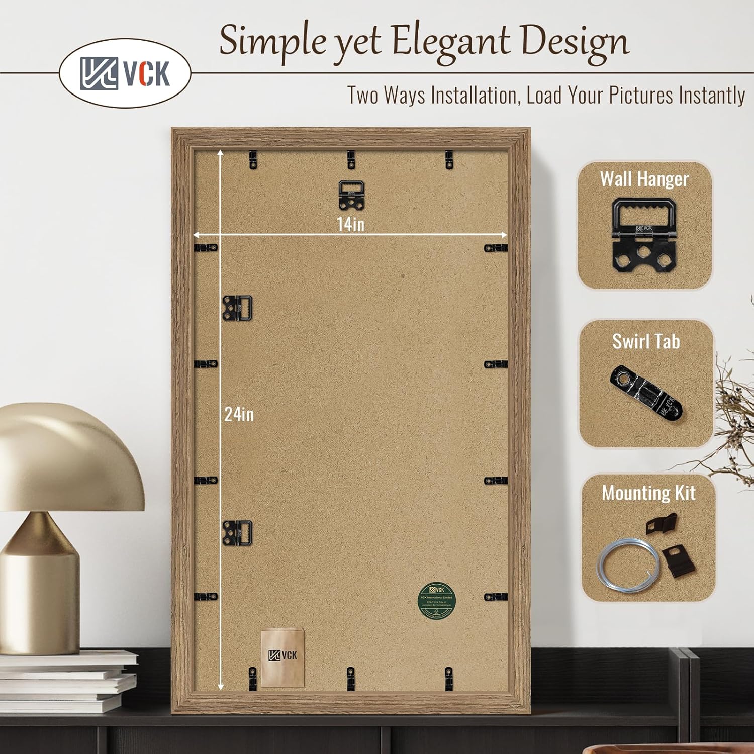VCK 14x24 Frame Set of 3 - Brown Walnut, Natural Textured Solid Wood Picture Poster Frame, Wall Gallery Frame