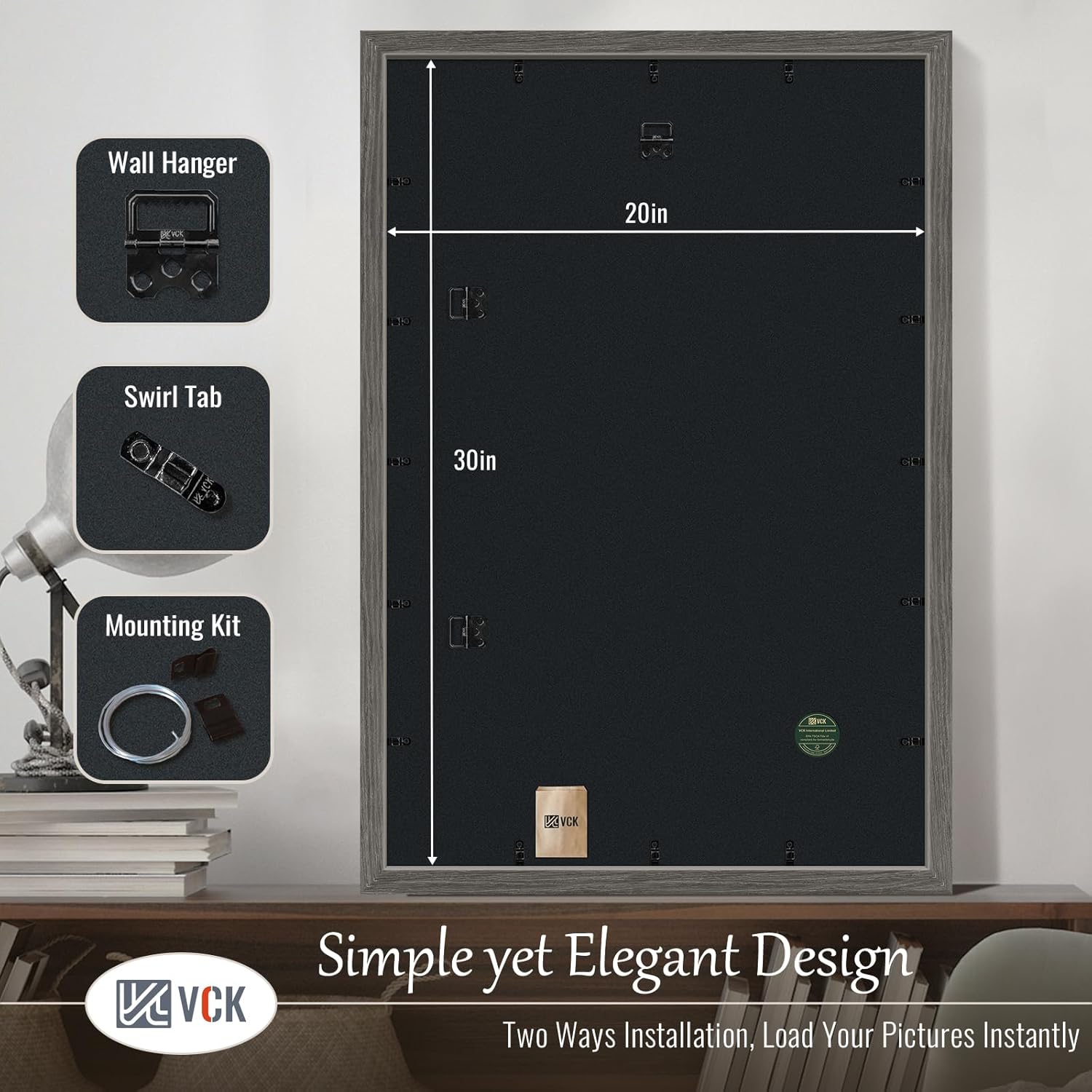 VCK 20x30 Frame 3 pack, Grey Solid Wood Poster Picture Frame, Exclusive Wood Grain, Wall Mounting Hanging