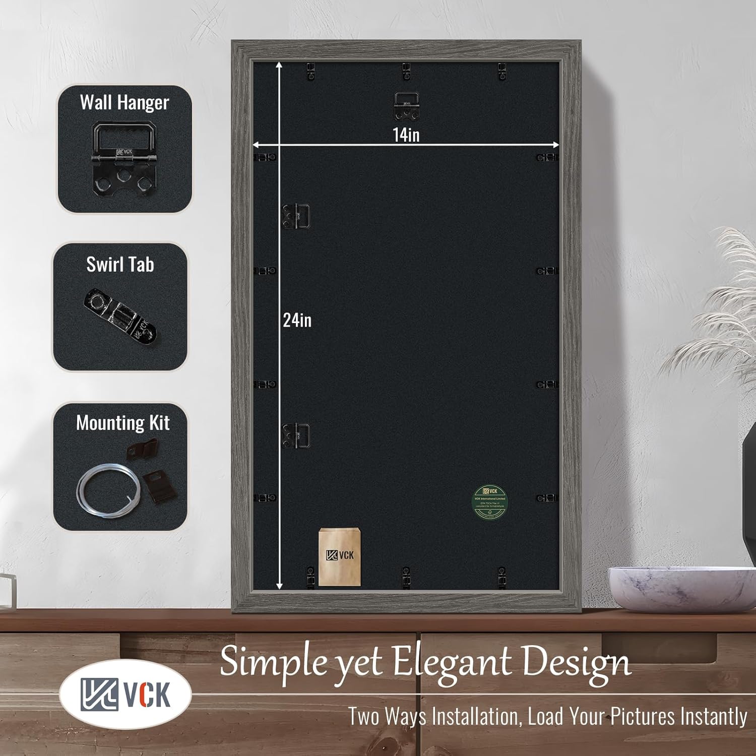 - Effortless Installation: This grey picture poster frame comes with hanging hardware for both vertical and horizontal display and features a unique spin-lock design for easy loading of 14x24 or 24x14 photos, prints, diplomas, puzzles, art, and more