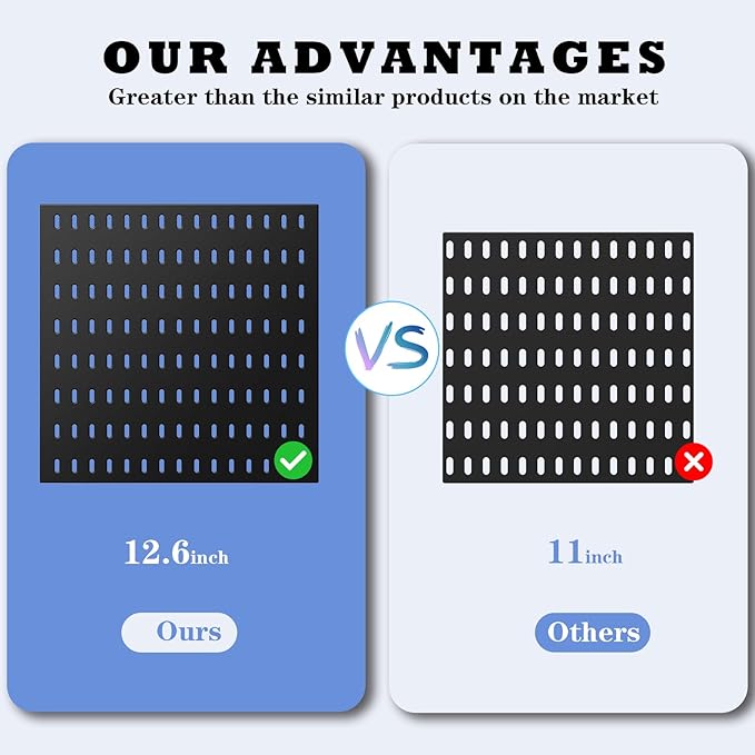 - Cost-Effective: This Pegboard Combination Kit is adjustable and removable. This new set is12.6"X12.6", bigger than the formal 11”X11”. The 20 accessories show more cost-effective than the formal 16 accessories