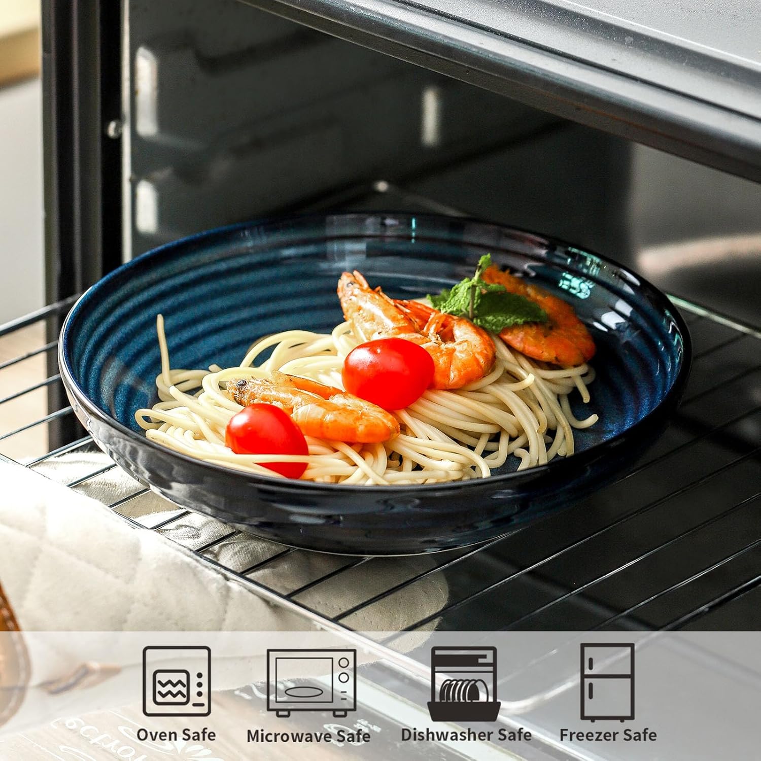 Pasta Bowls 32 OZ,Ceramic Salad Serving Bowls Set of 4,Large 8.7 inch Shallow Bowls Plates for Soup,Fruit,Noodle,Dinner,Dishwasher & Microwave Safe,Navy Blue