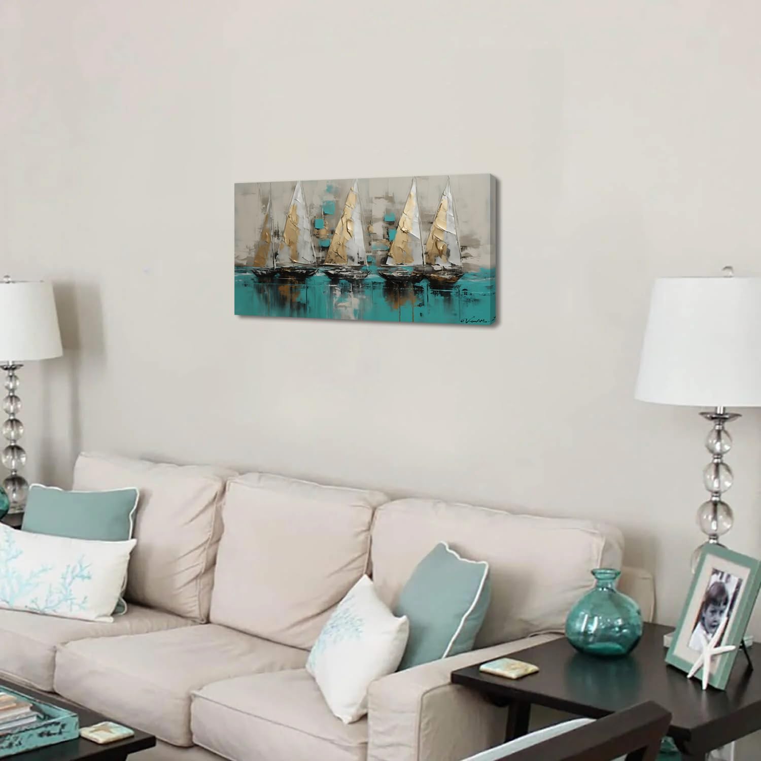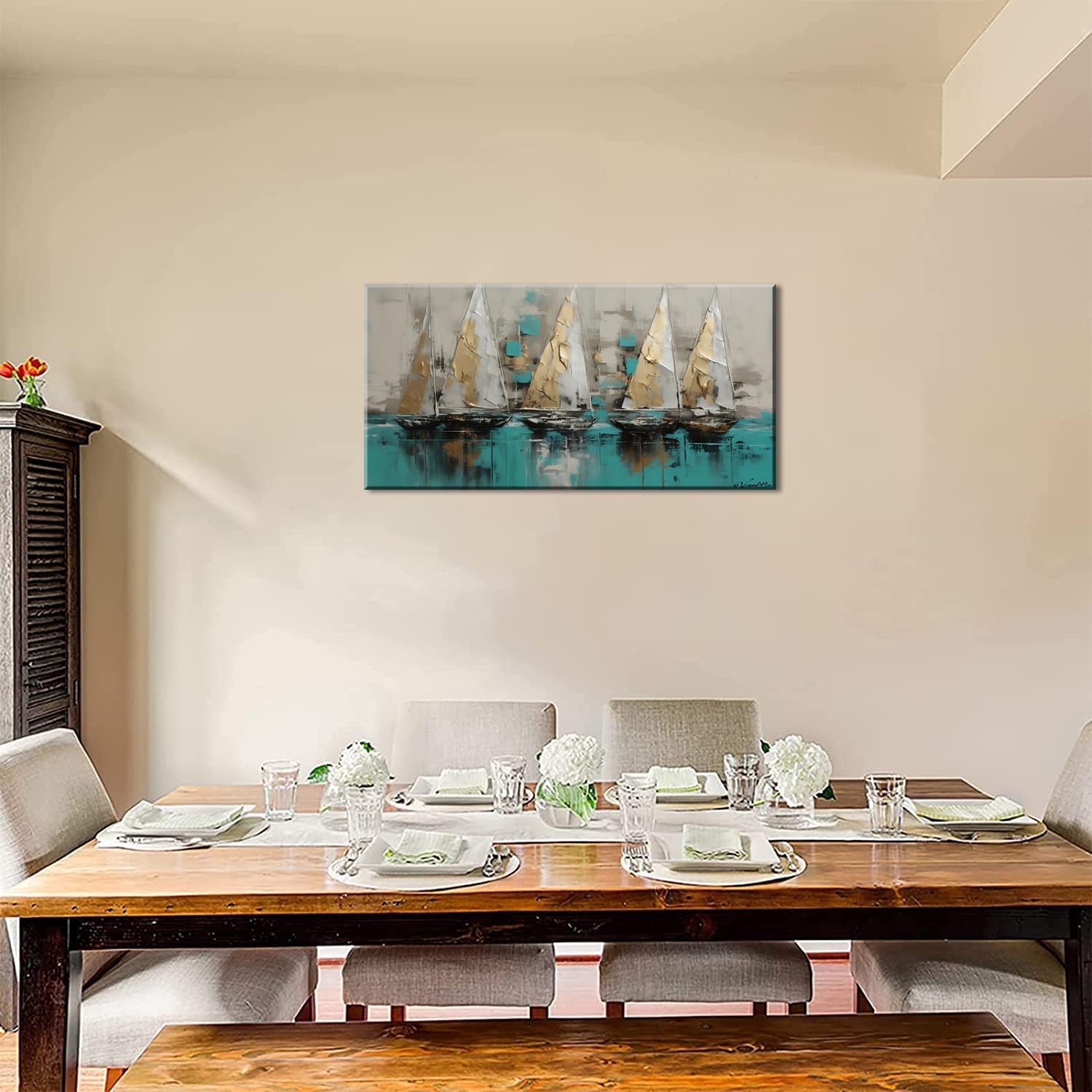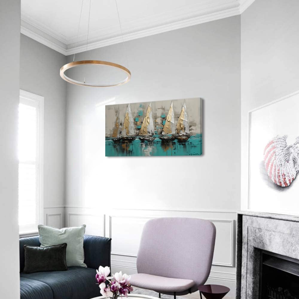 - 【Convenient to Use for Canvas Paintings 】-Large Canvas Wall Art Colorful Sailboat Artwork Seascape Pictures comes with pre-installed hooks on the back for you to conveniently hang it on the wall, and it is easy to remove when not in use;The hanging design can save you the trouble to use adhesive and prevent the wall from being stained by glue and leaving marks.