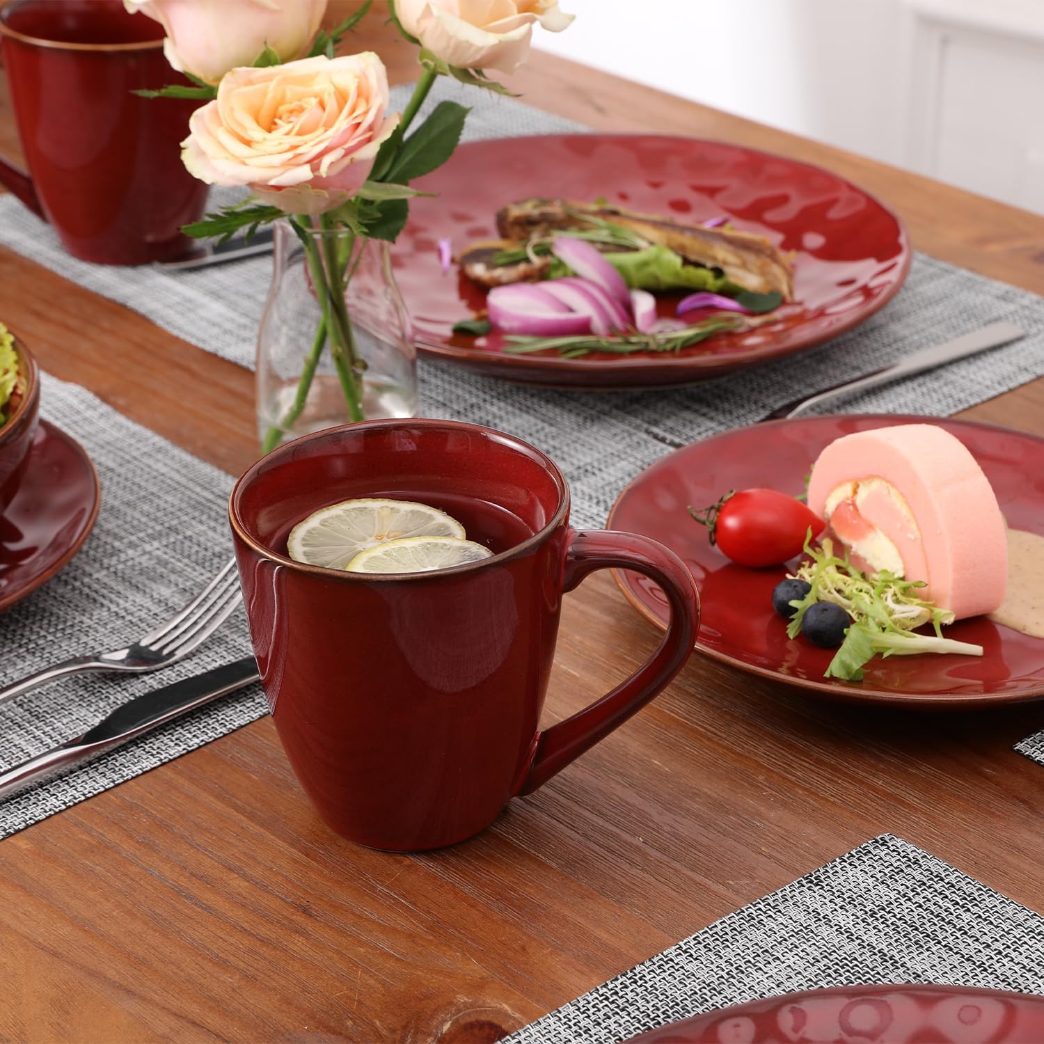 vicrays Coffee Mug Set, 12 Ounce, Set of 6, Ceramic Mug for Men, Women, Unique Glazed Mugs with Handle for Coffee, Tea, Milk, Cocoa, Cereal(Cherry Red)