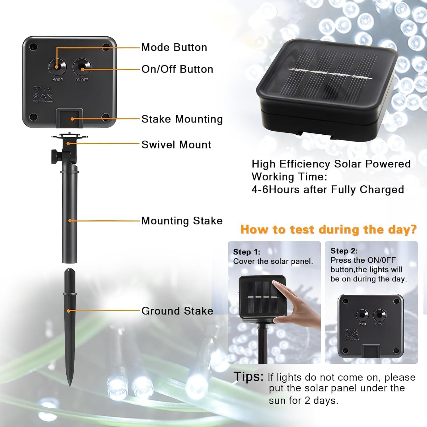 - 【IP65 Waterproof & Excellent After Sale Service】Solar string lights outdoor waterproof have IP65 waterproof rating and can withstand severe weather. If you are not satisfied with your purchase, please contact us. We will reply you within 24 hours and deal with it until you are satisfied.