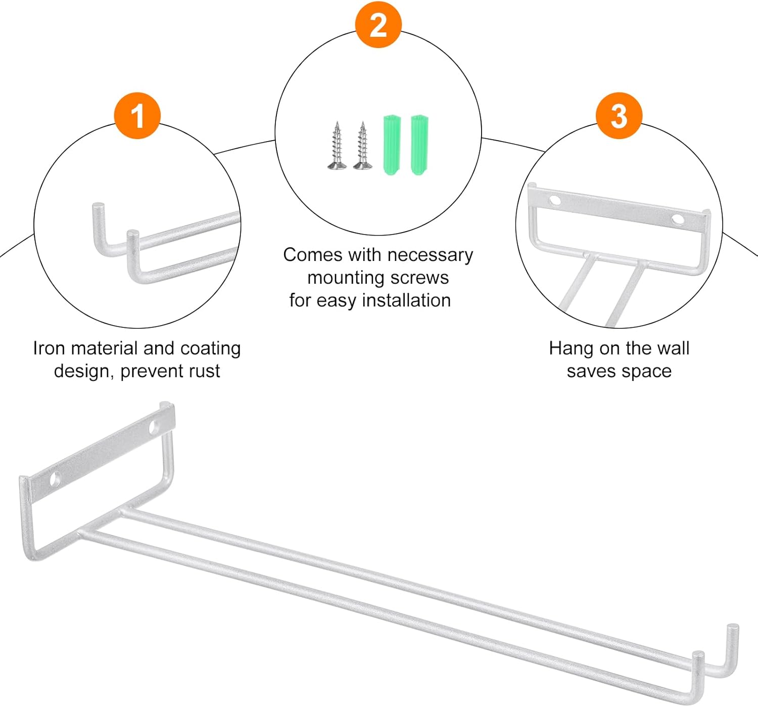 - [Easy to Install] Our wine glass rack comes with the necessary mounting screws for easy installation. You can only need to use a screwdriver to screw the provided screws into the wood of the cabinet. They fit perfectly under cabinets in a few minutes.