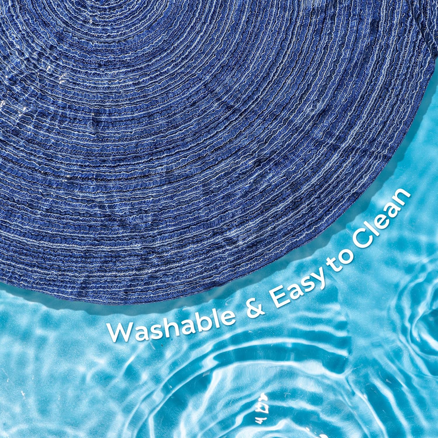 Leetaltree Round Placemats Heat and Slip Resistant Cotton Table Mats, Washable Bohemian Placemats for Dining Tables (Denim Blue, Set of 12)
