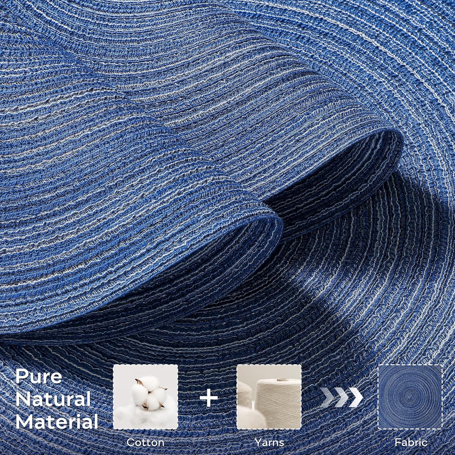 Leetaltree Round Placemats Heat and Slip Resistant Cotton Table Mats, Washable Bohemian Placemats for Dining Tables (Denim Blue, Set of 6)