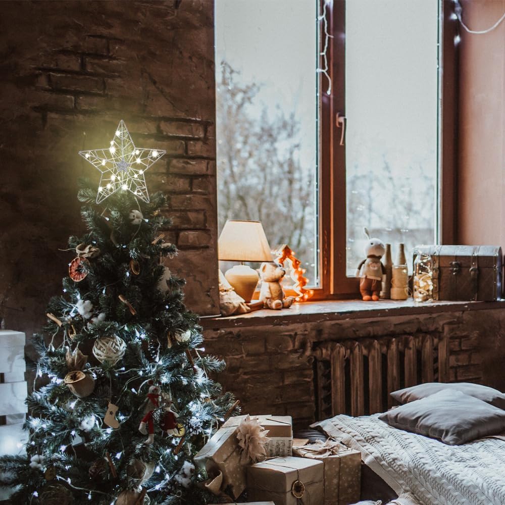 - 🎄【BEST CHRISTMAS TREE COMPANION】YEAHOME 5-Point star Christmas tree topper is silver glittered with LED lights embedded, creating a cozy ambiance. No Christmas tree is complete without a Christmas tree topper! The warm and clear lights will transport you to a mesmerizing night sky, reminiscent of dazzling stars. Our star Christmas tree topper is the perfect icing on the cake for your holiday tree, completing the magical atmosphere.
